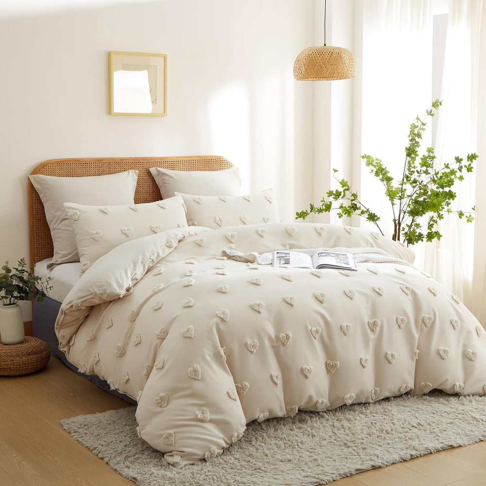 Tospass Bettwäsche 135x200cm Beige Getuftet Handgemacht Stickerei Blumen Boho Bettwäsche Set Vintage