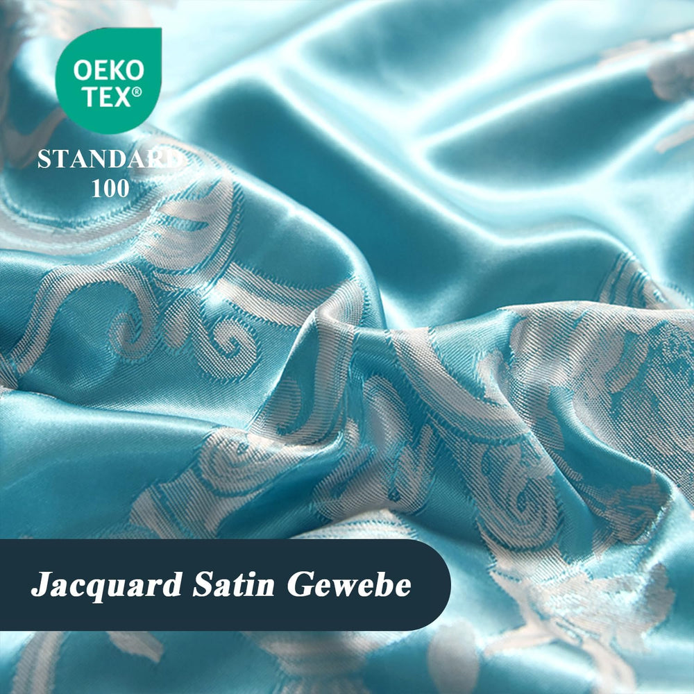Tospass Satin Bettwäsche 200x220 Himmelblau Microfaser 3Teilig Jacquard Stickerei Prozess Blumen Bet
