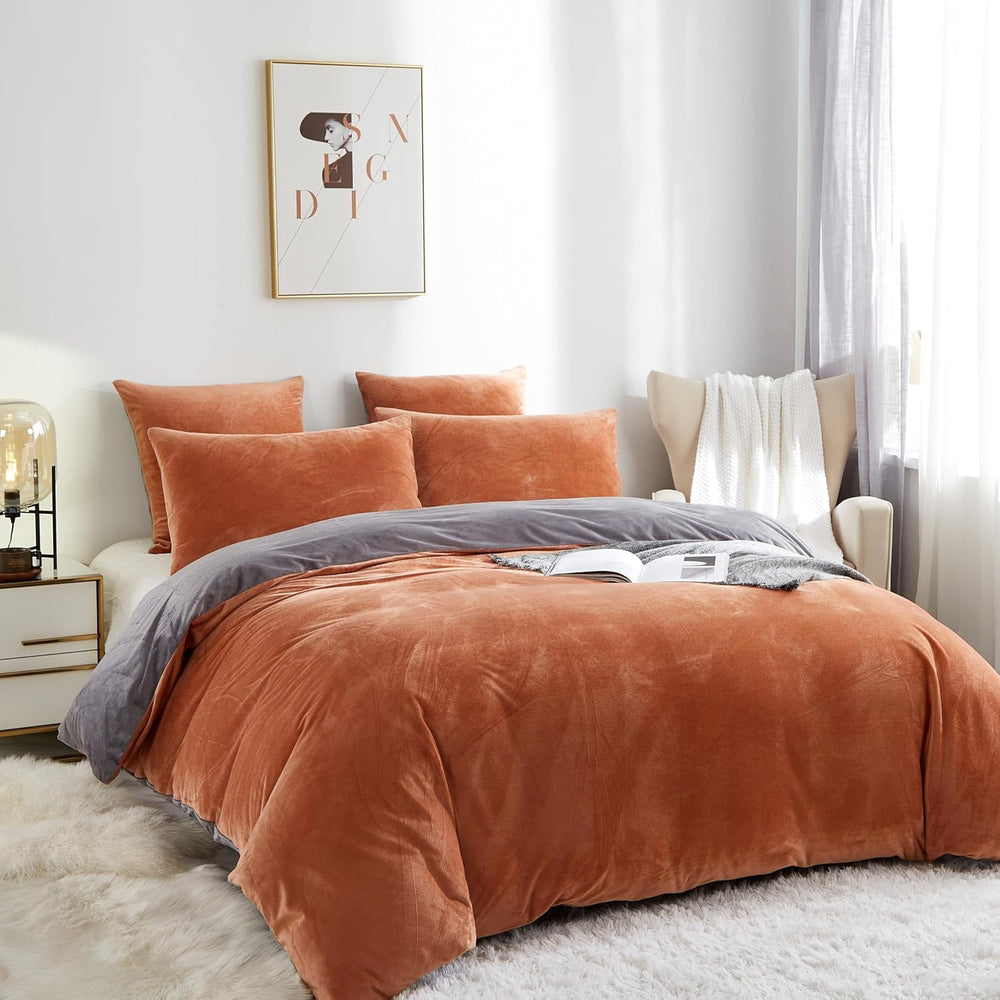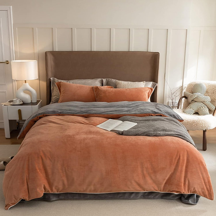 Tospass Winter Bettwäsche 135x200cm Plüsch Flanell Fleece Karamell Grau Warm Winterbettwäsche Flausc