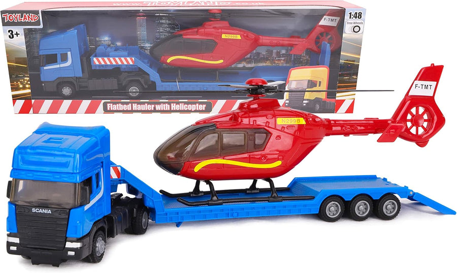 Toyland® Scania Pritschenschlepper mit Hubschrauber - Massstab 1:48 - Freilauf - Transportspielzeugs