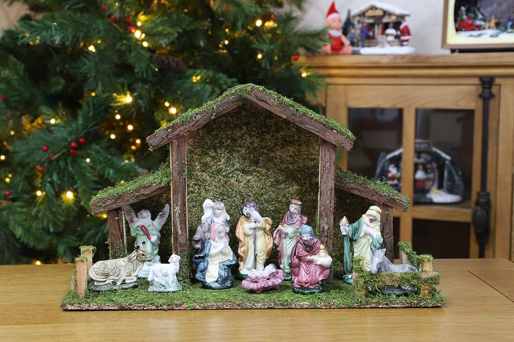Toyland® Weihnachtskrippe Traditionell Krippenstall mit 11 Krippenfiguren Weihnachtsdeko Weihnachtsd