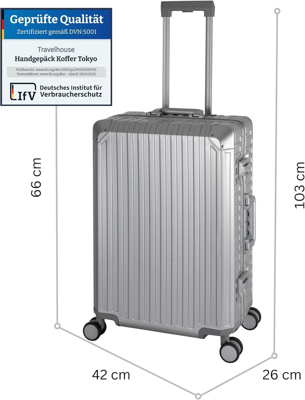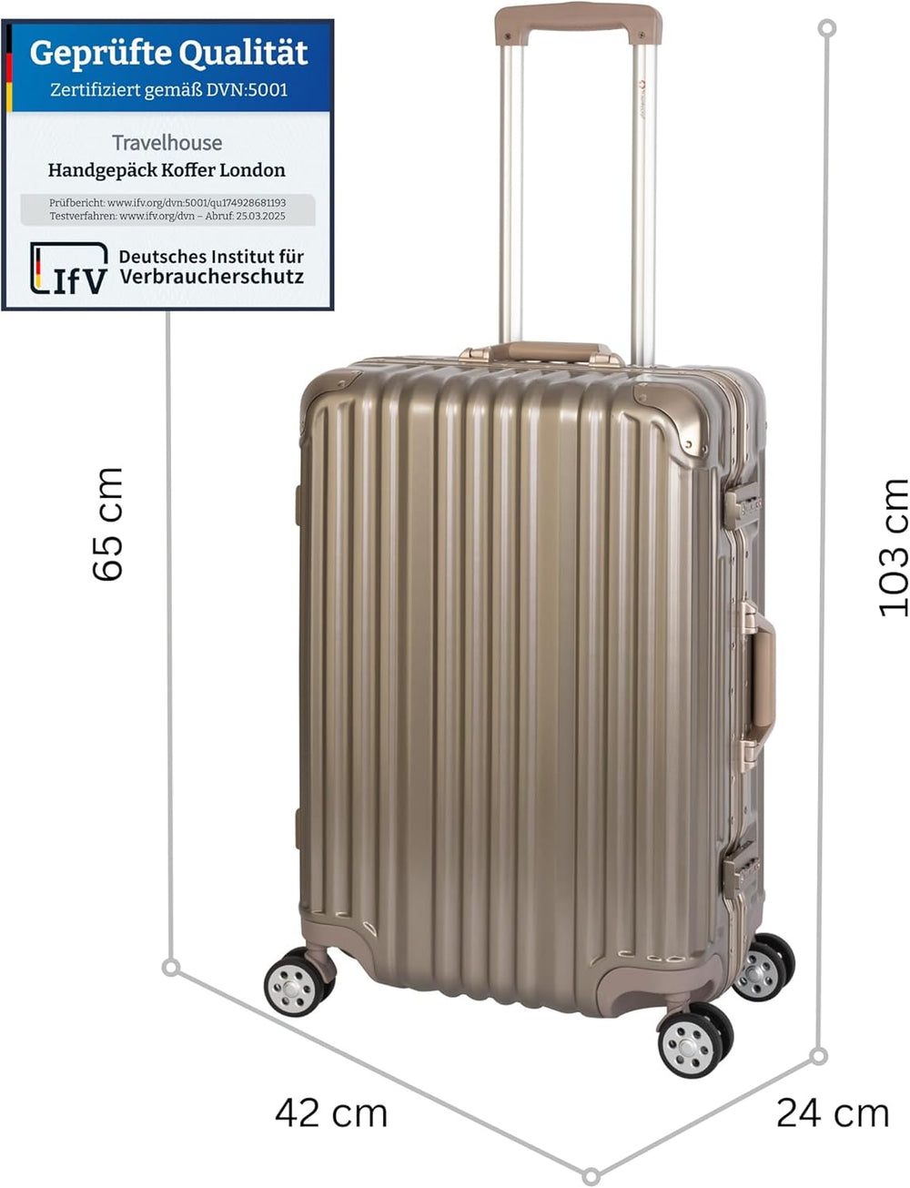 Travelhouse Koffer London 65 cm – Aluminium-Rahmen, Polykarbonat Hartschale, 67L Volumen, 4X Silent