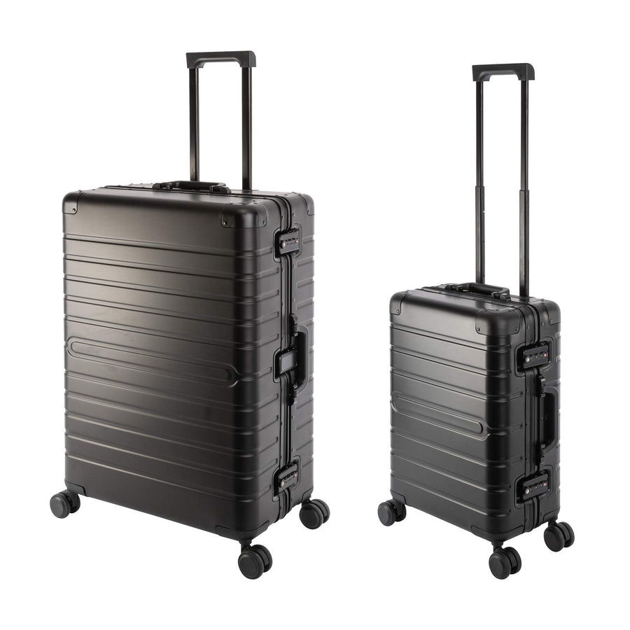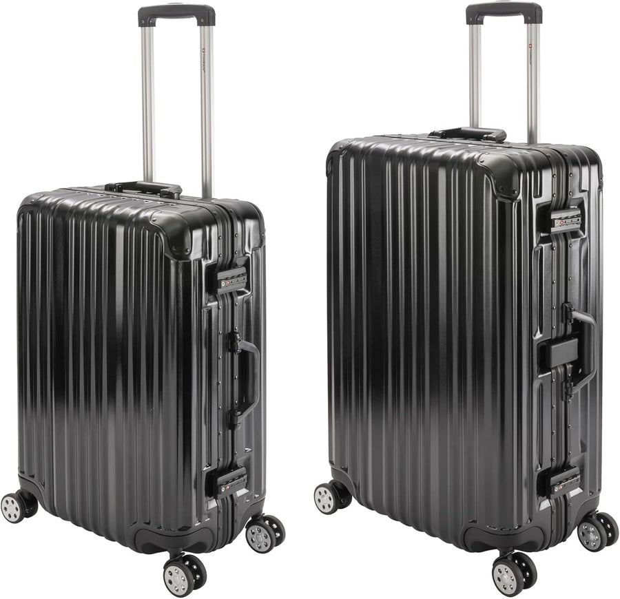 Travelhouse Oslo Alu Reisekoffer Schwarz M-65cm & L-75cm Hartschalenkoffer Reise Trolley Koffer Set