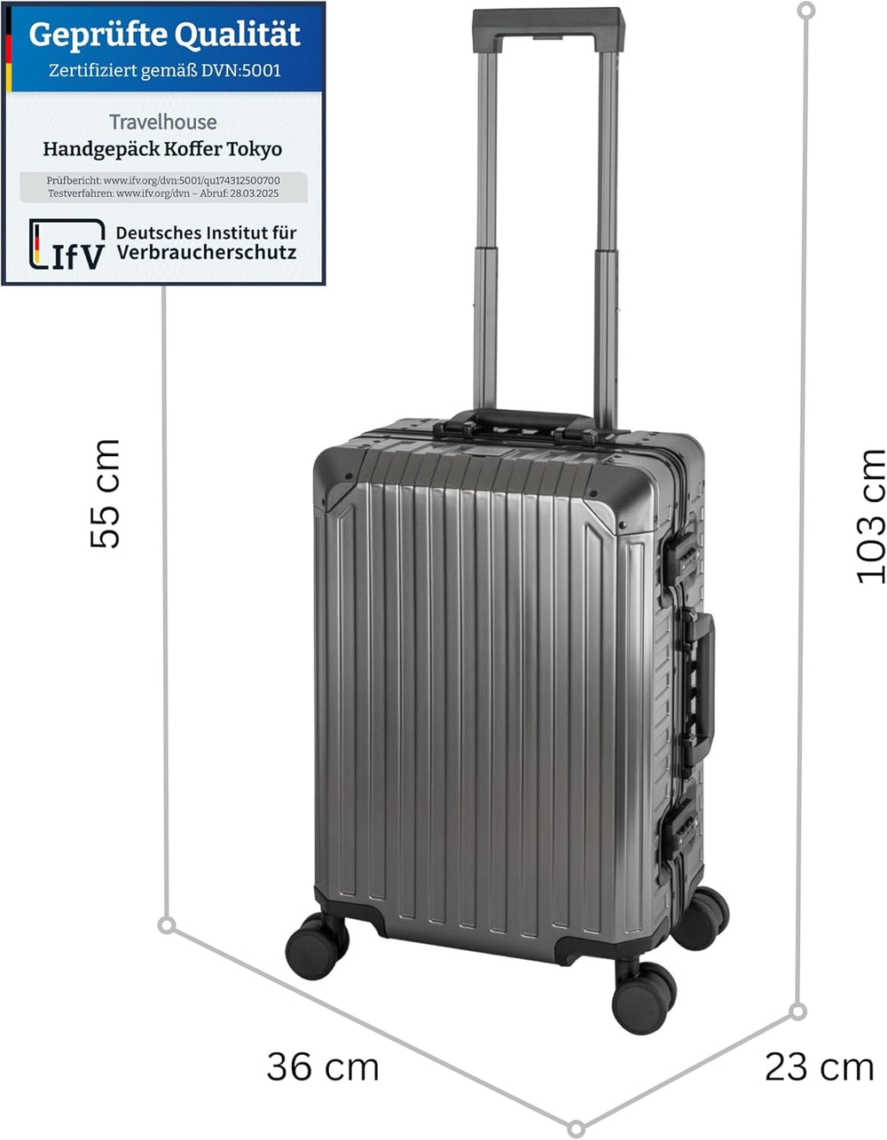 Travelhouse Koffer 100% Aluminium Reisekoffer Bordkoffer Hartschalen-Koffer Handgepäck 55cm· Telesko
