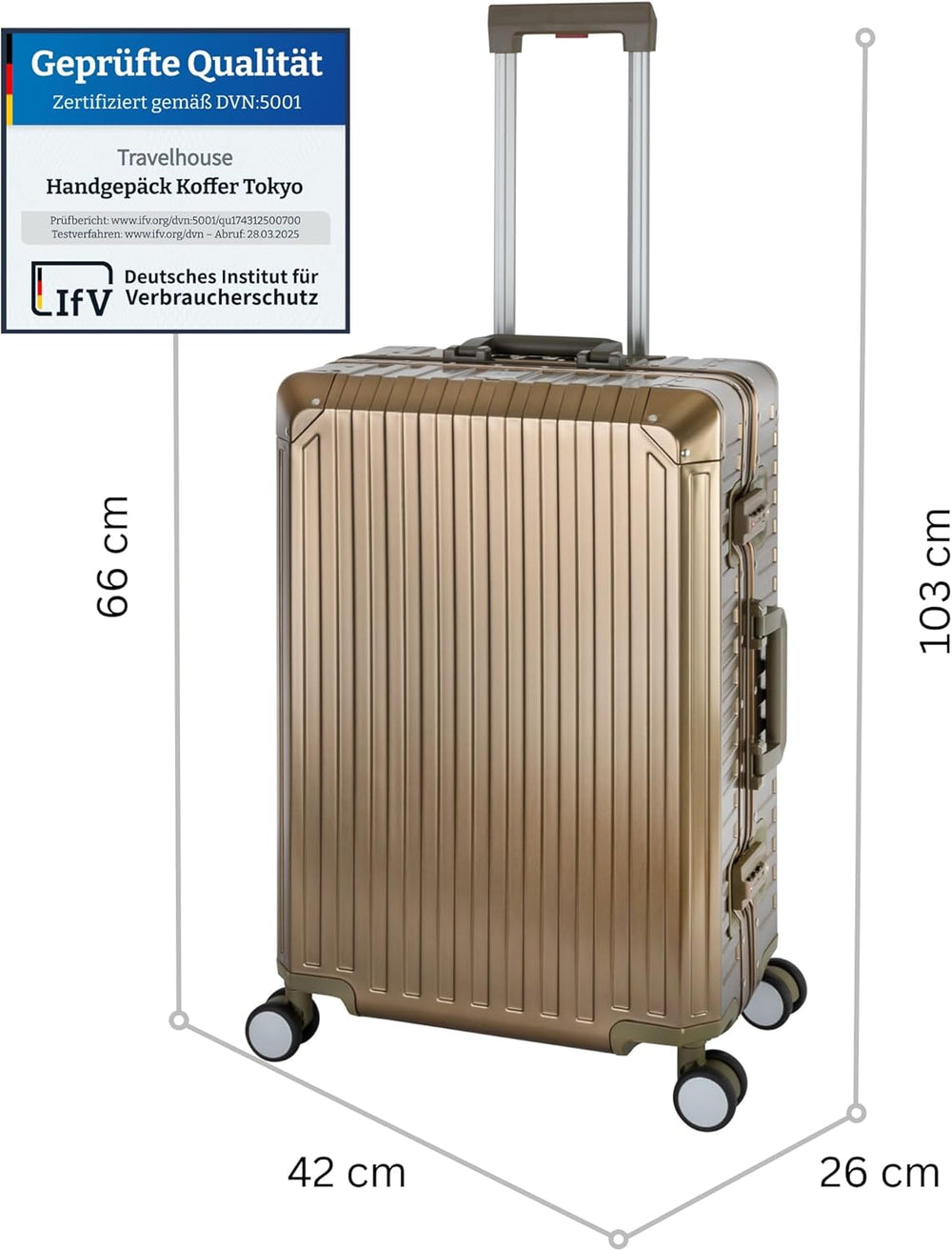 Travelhouse 100% Aluminium Reisekoffer Tokyo Champagner L-72cm Hartschalenkoffer 2X TSA Zahlenschlos