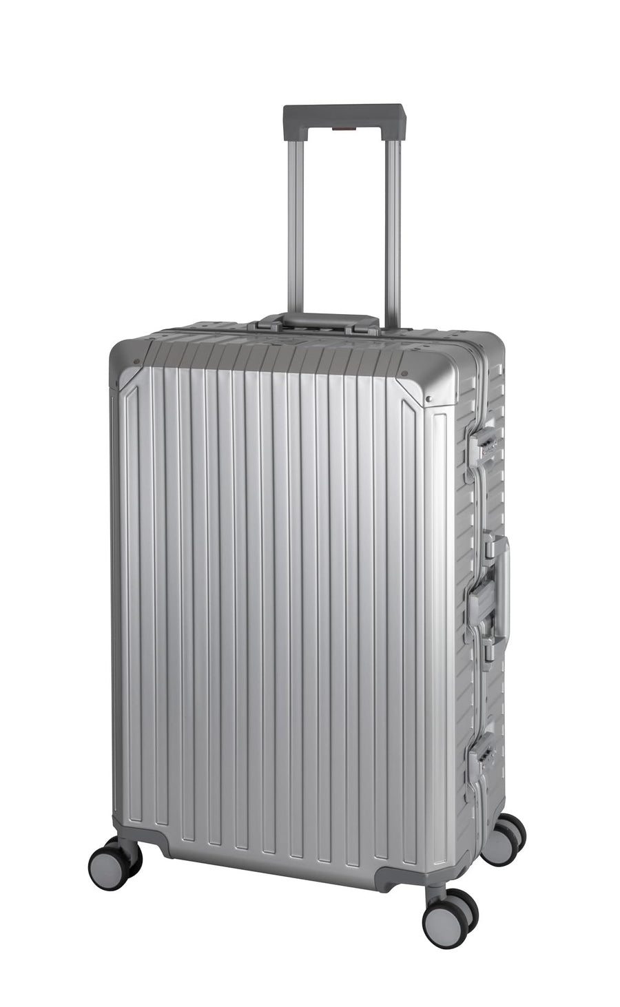 Travelhouse 100% Aluminium Reisekoffer Silber L-72cm Hartschalenkoffer 2X TSA Zahlenschloss 4 Silent