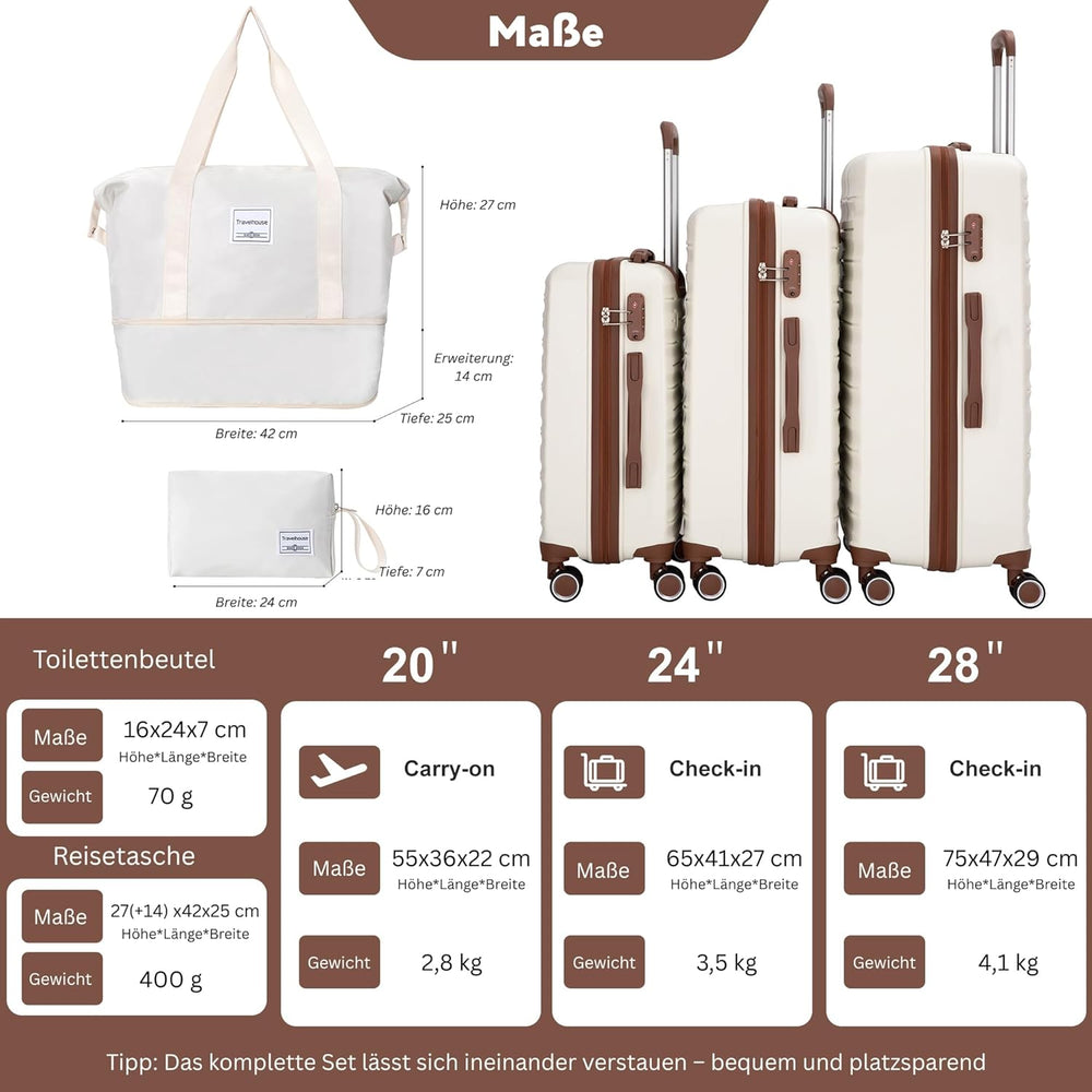 Travelhouse Ascona Kofferset 5-teilig – ABS Hartschale Trolley Set mit 4 Rollen, TSA-Schloss, Reiset