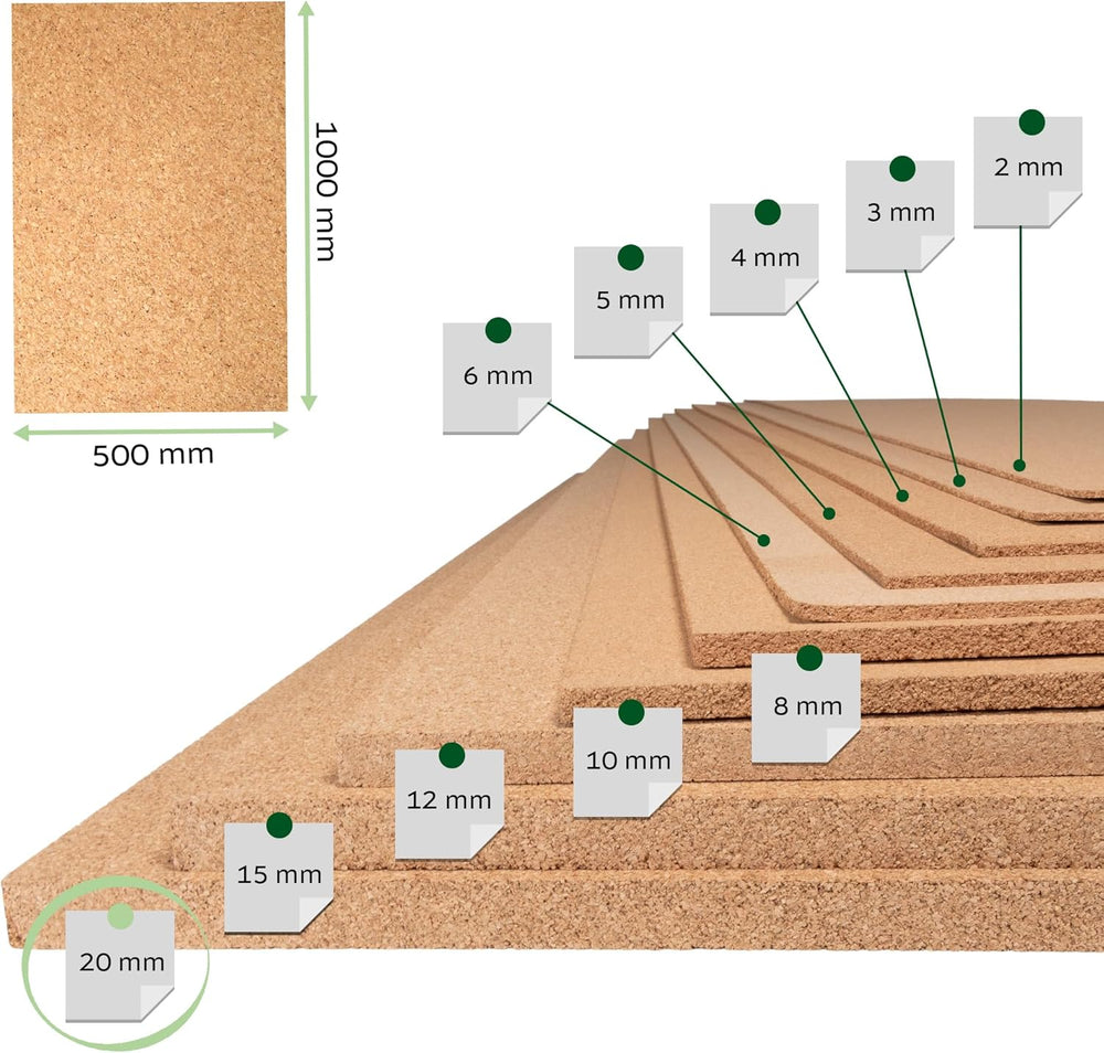 TRECOR Pinnwand Korkplatte Format: 1000 x 500 mm - Stärken: 2-20 mm - hochwertige Korkplatte - hoche