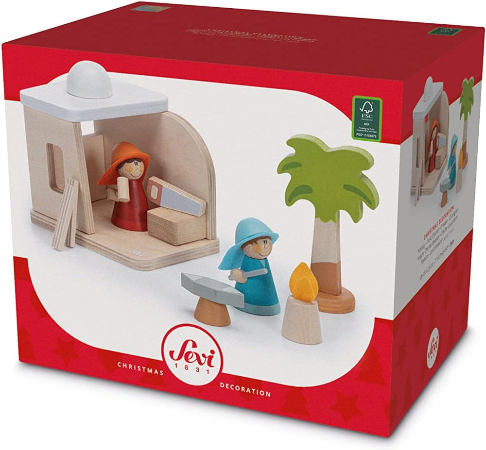 Sevi 83101 Krippen-Set Handwerker 9 teilig, Krippenzubehör aus Holz, Set zur Ergänzung der Weihnacht