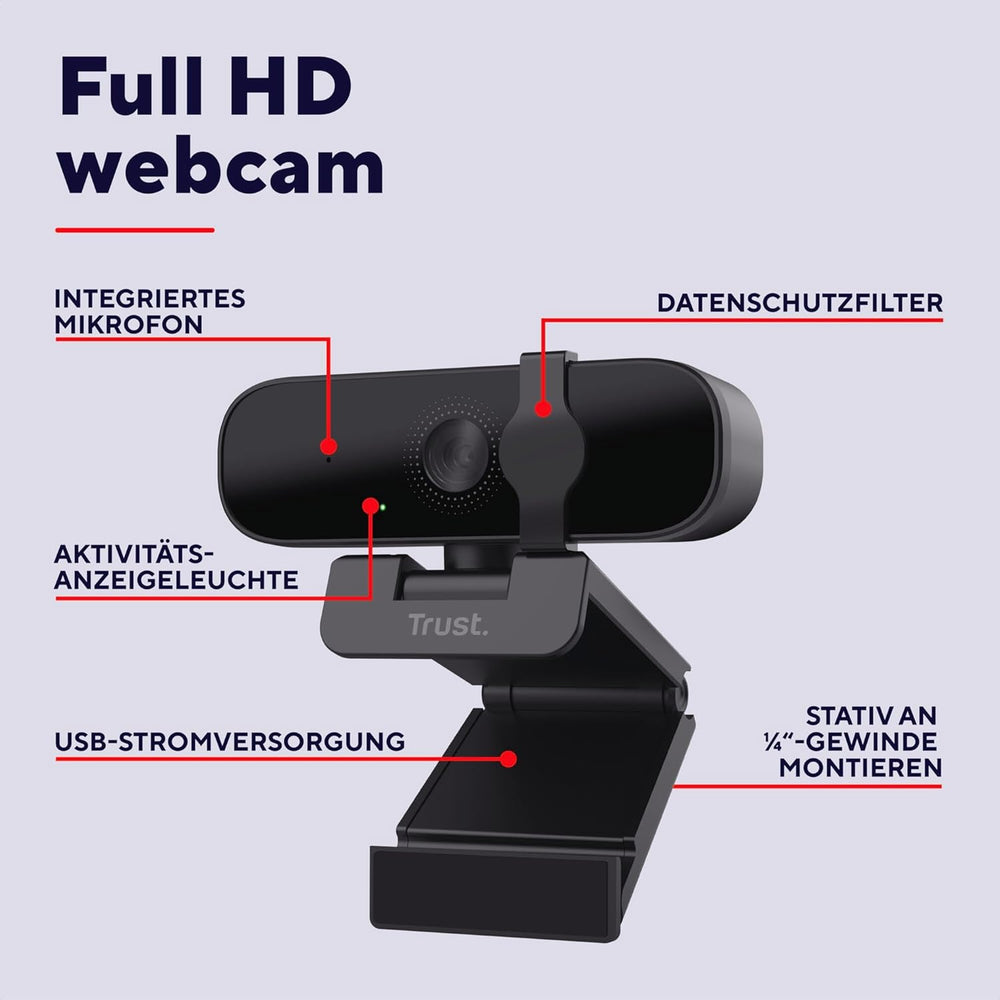 Trust Oran 1080p Webcam PC, Full HD USB Web Cam mit Blickschutzfilter, PC Kamera mit Mikrofon, Fixfo
