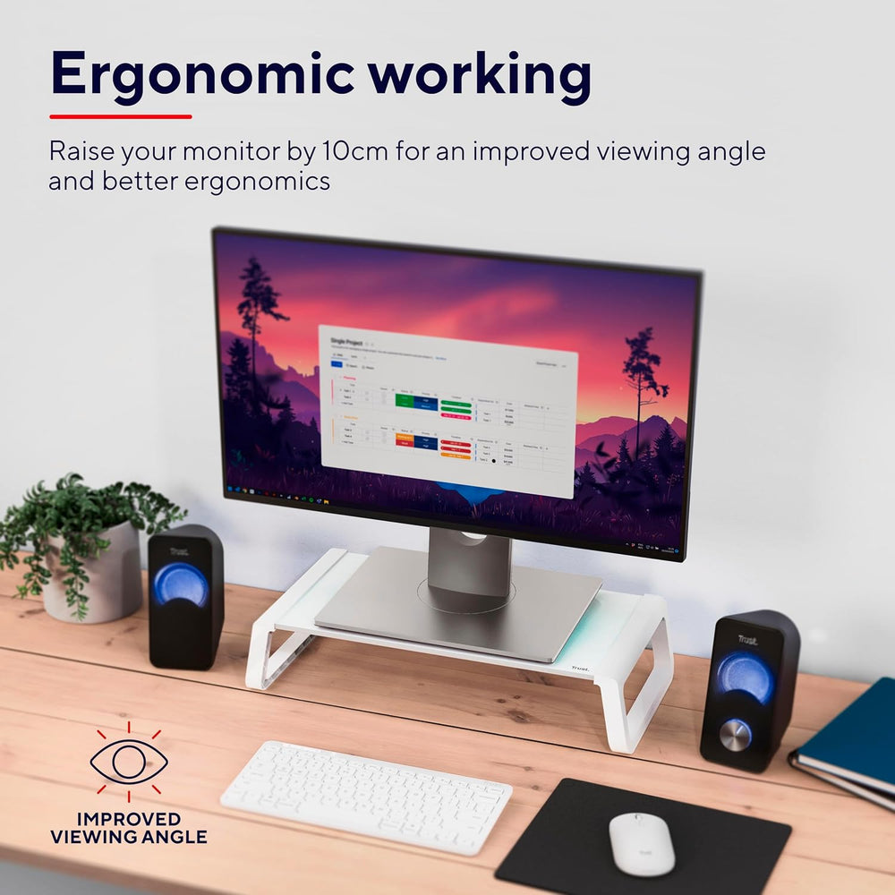 Trust Monta Monitorständer 41 x 22 x 10 cm, Bildschirmerhöhung aus Hartglas, Schreibtisch Monitorerh