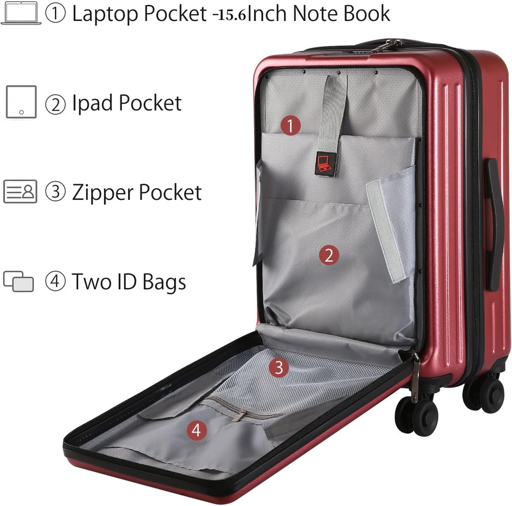TydeCkare Handgepäck Koffer mit Laptoptasche mit Frontöffnung, 20 Zoll ABS+PC Leicht Hartschalenkoff