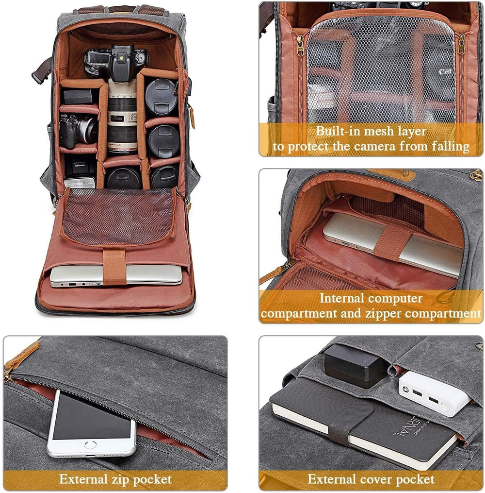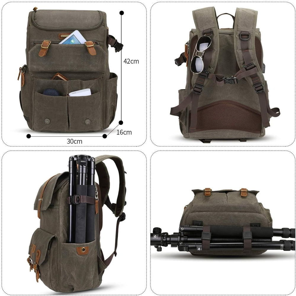 UBAYMAX Kamerarucksack mit Laptopfach,Spektiv DSLR Rucksack,Camera Backpack Canvas,Fotorucksack Vint