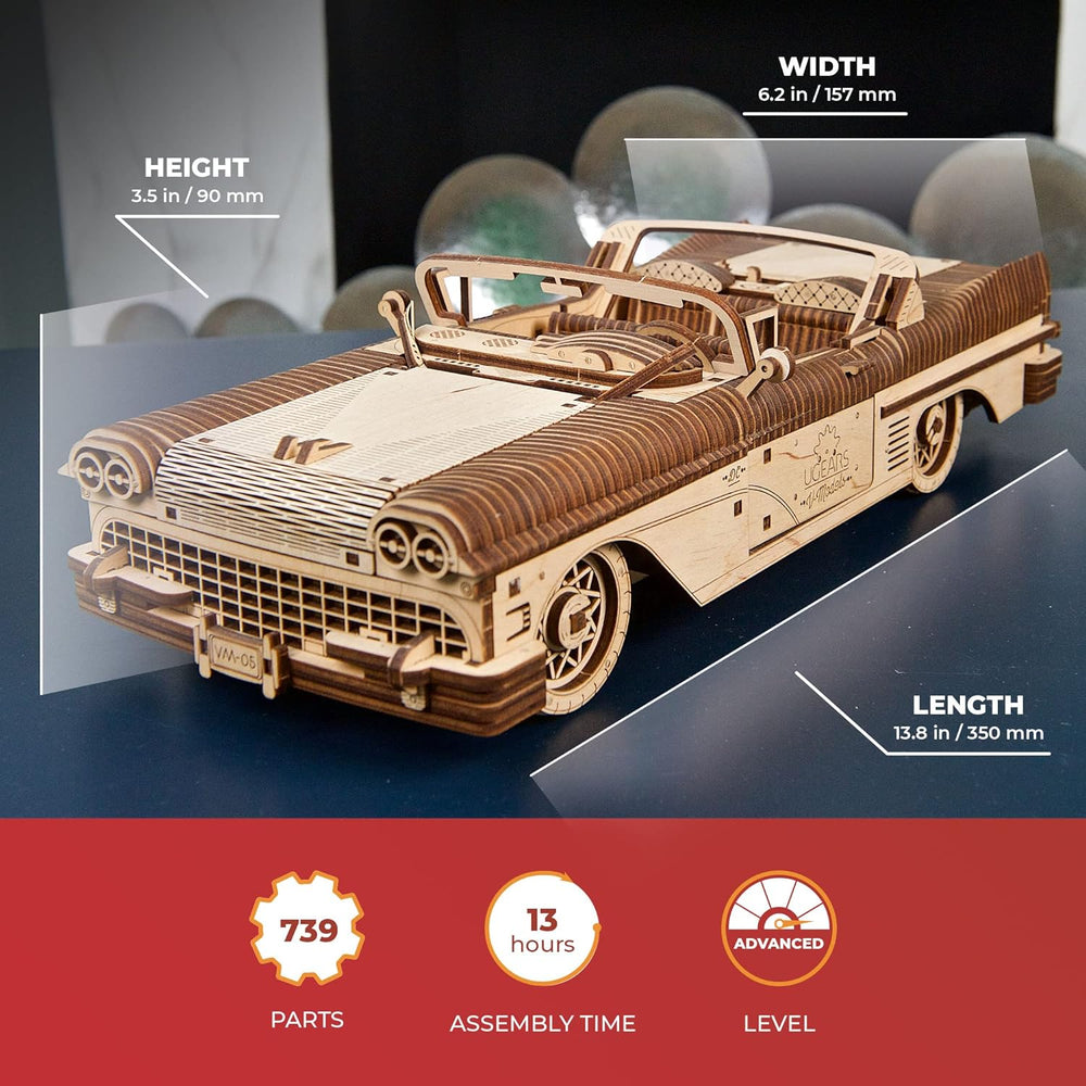 UGEARS Dream Cabriolet – Vatertagsgeschenk, 3D-Puzzles für Erwachsene, mechanische Modelle, Holzpuzz