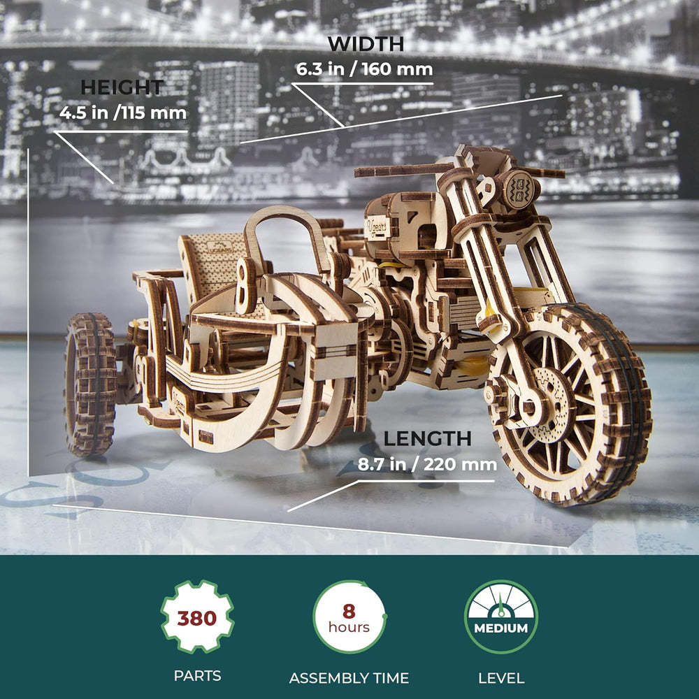 UGEARS Motorrad mit Beiwagen 3D-Puzzles – Vatertagsgeschenk Holzmodellbausätze für Erwachsene zum Ba