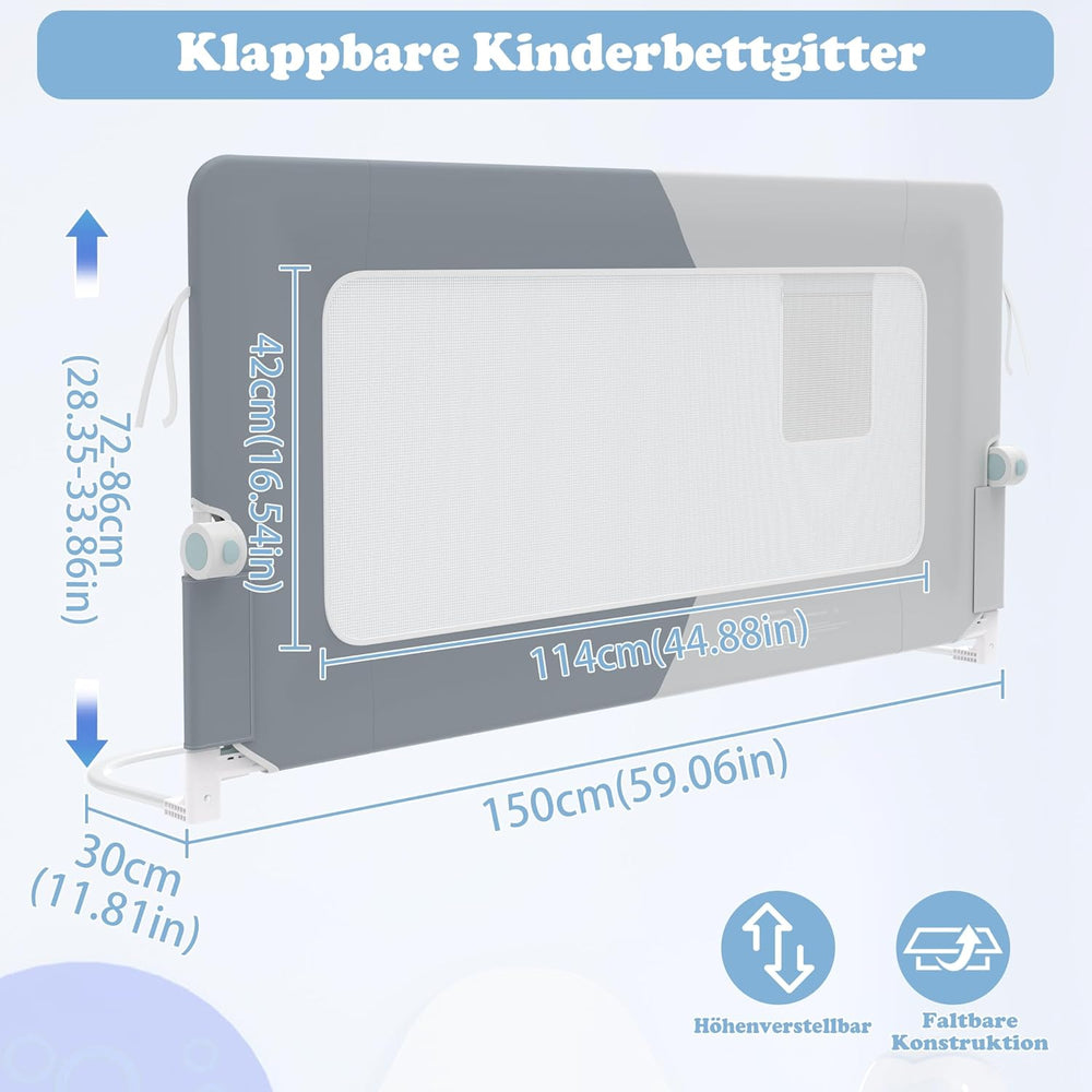 UISEBRT Bettgitter 150cm Bettschutzgitter Klappbar für Kleinkinder, Rausfallschutz Höhenverstellbar