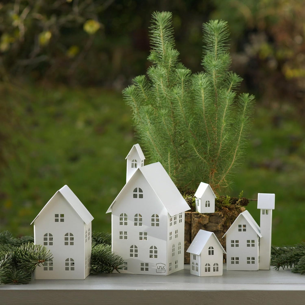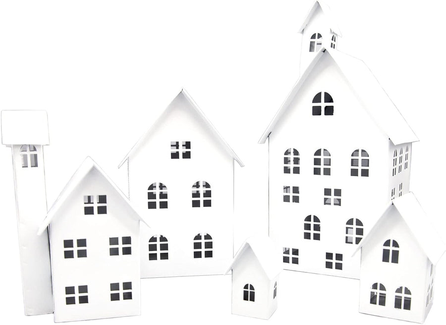 UNUS Deko Häuser 5er Set, Lichthäuser aus Metall, in Weiss, Herbstdeko Outdoor, Weihnachtsdorf für G
