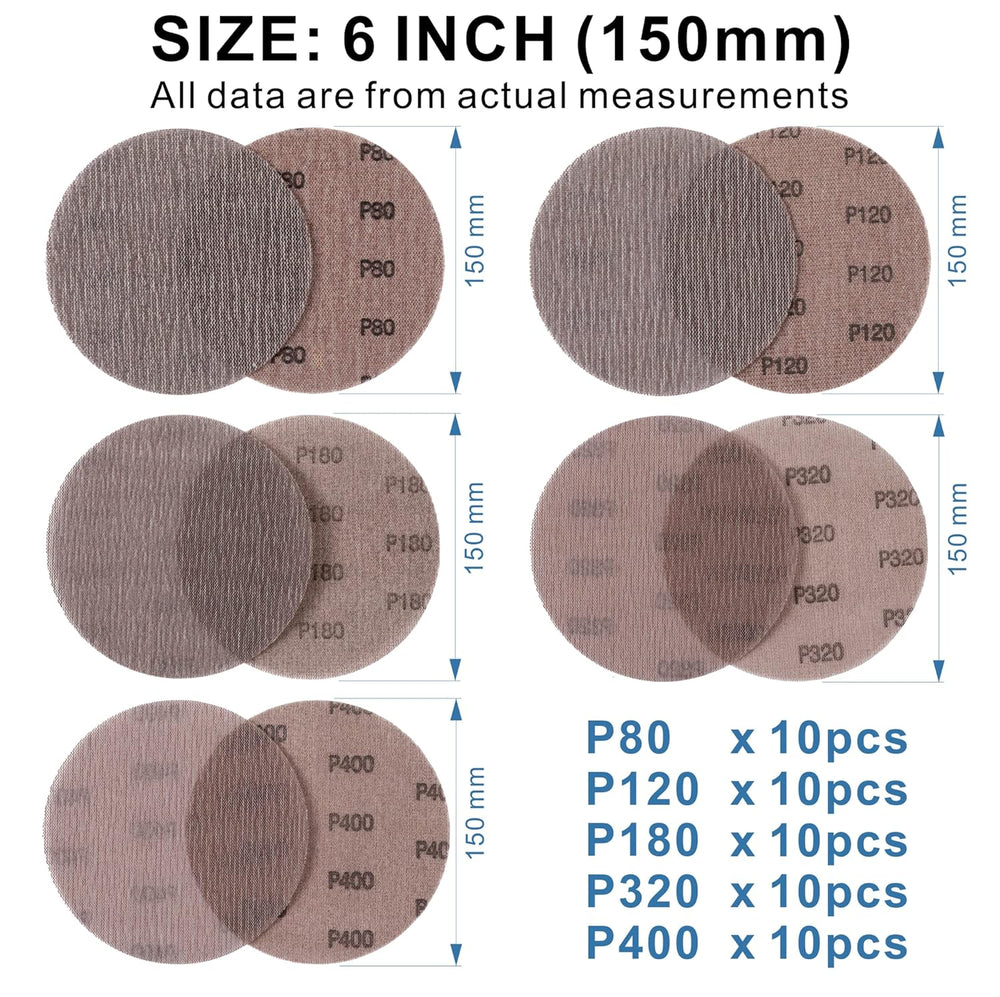 UPWOOD Schleifgitter 50 Stück 150mm Klett Klett Körnung 80 120 180 320 400, Zum staubfreien Schleife