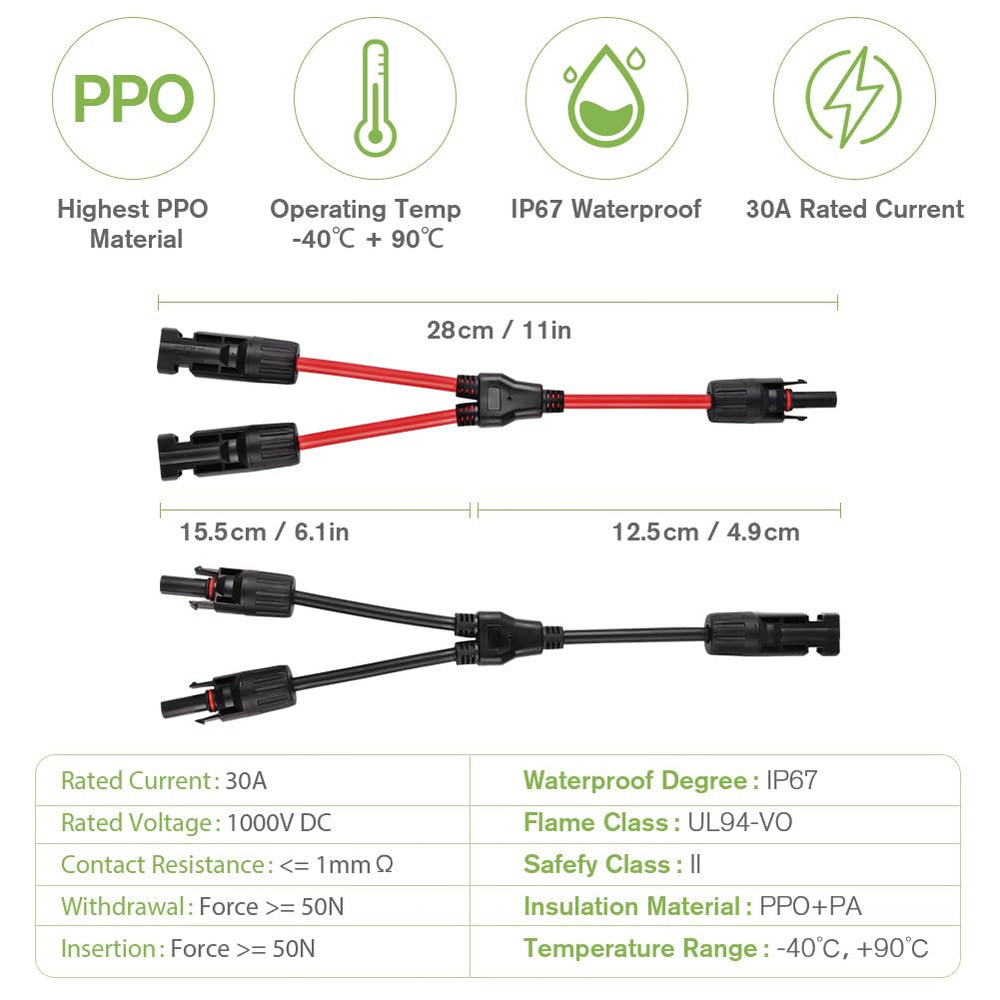 URAQT Solarkabel Y Verteiler, 1 Paar 4 mm² Solarkabel Y Solar Cable Wasserdicht Y Splitter 12AWG Plu