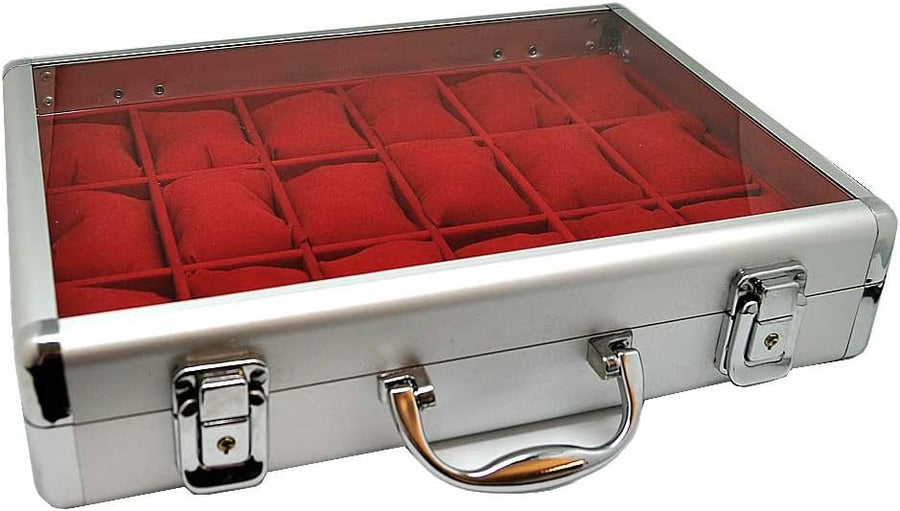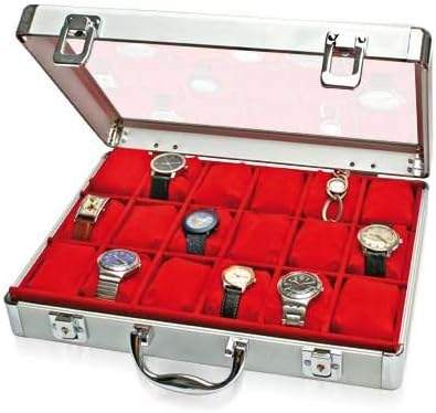 Alu Uhrenkoffer für 18 Uhren Uhrenbox Schaukasten Uhrenkasten ROT 4736