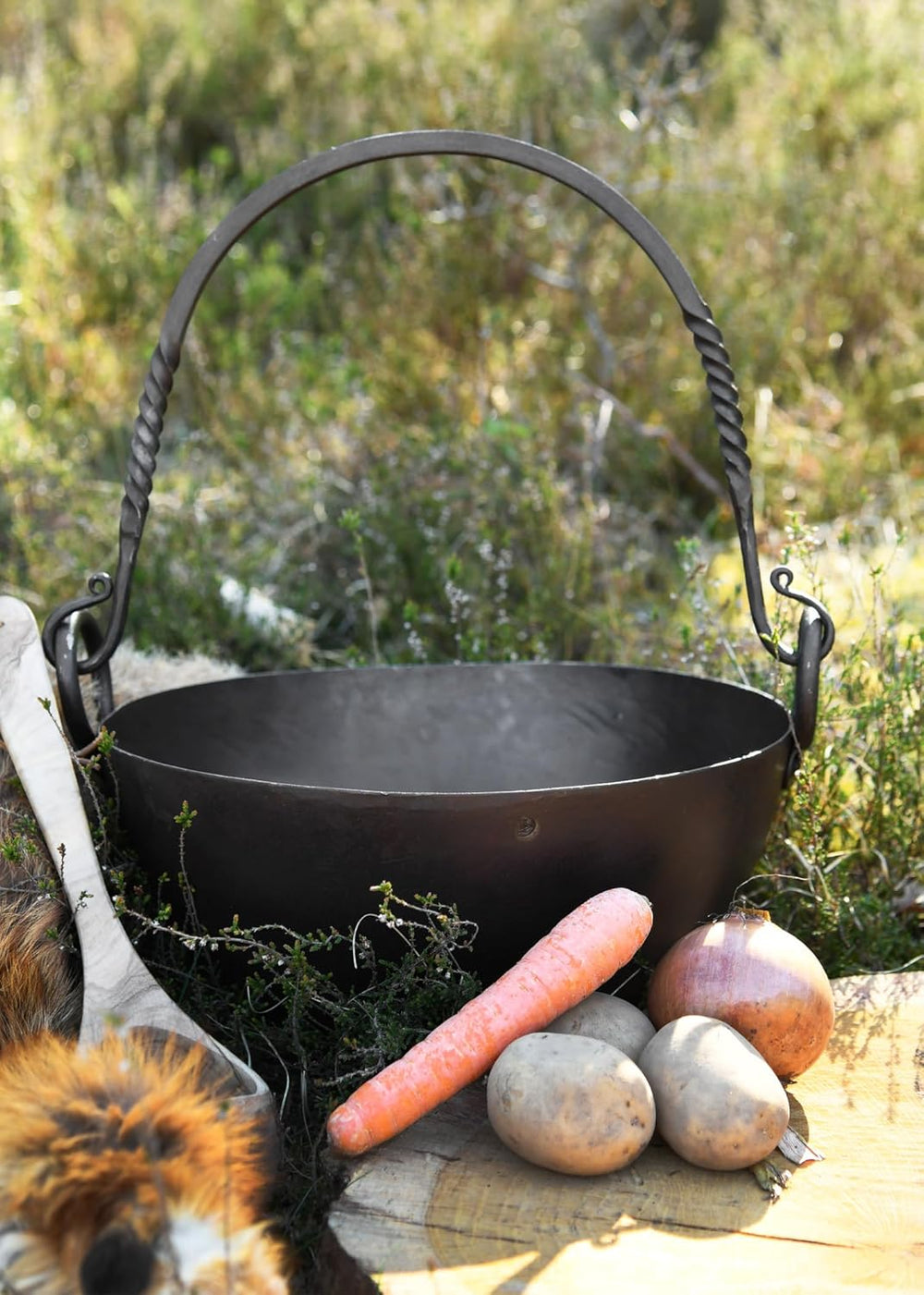 Runder Lagertopf aus Stahl Gulaschkessel Mittelalter Lagerleben LARP Wikinger Topf Lagerküche 2,5 Li