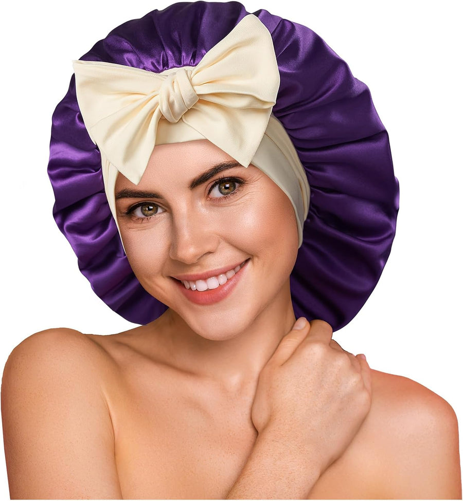 Umisleep 22 Momme Schlafmütze aus 100% Maulbeerseide, doppelseidige weiche Nachtmütze für lockiges H