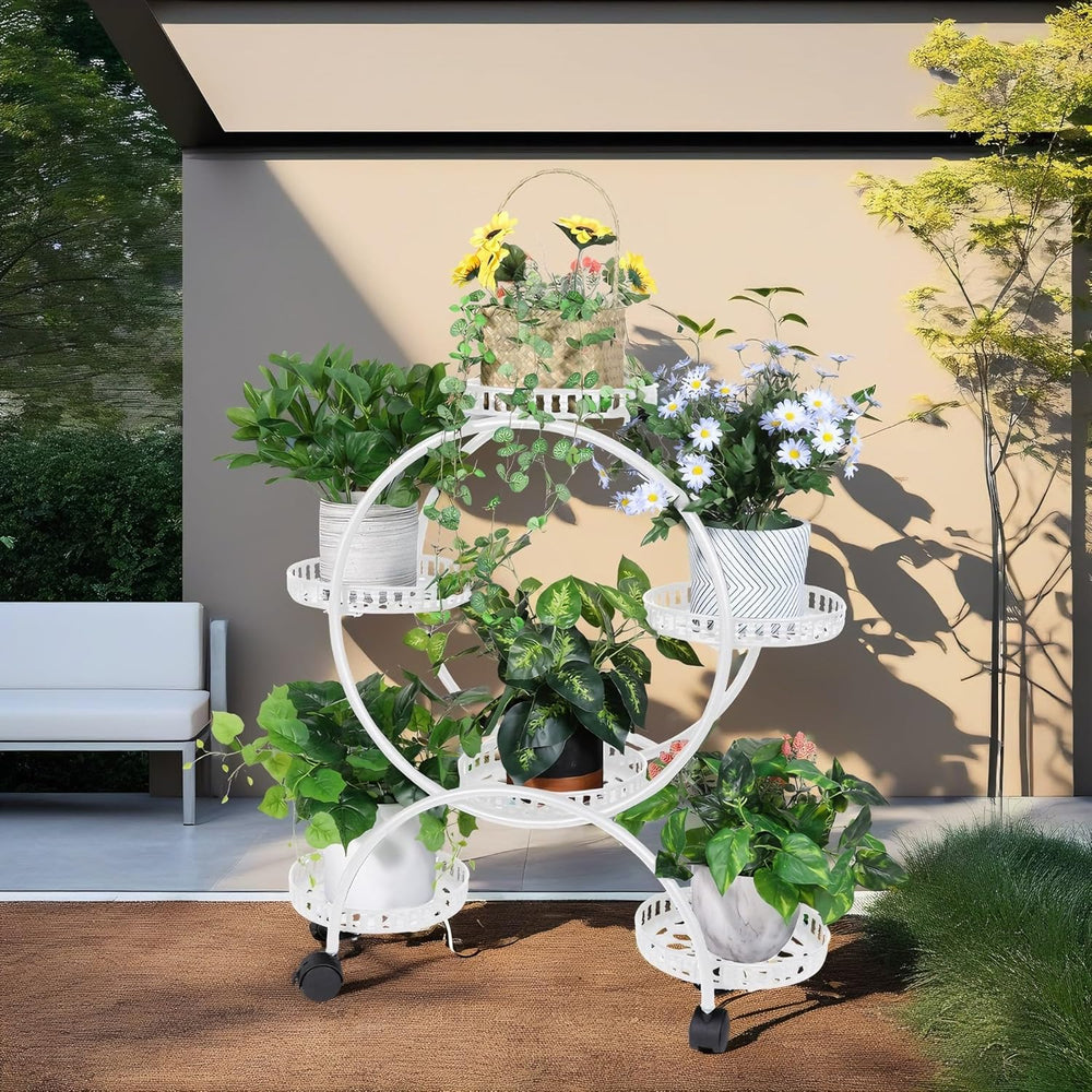 unho Blumentreppe für 6 Blumentöpfe, Blumenregal rollbar, Metall Pflanzenregal Pflanzentreppe für In