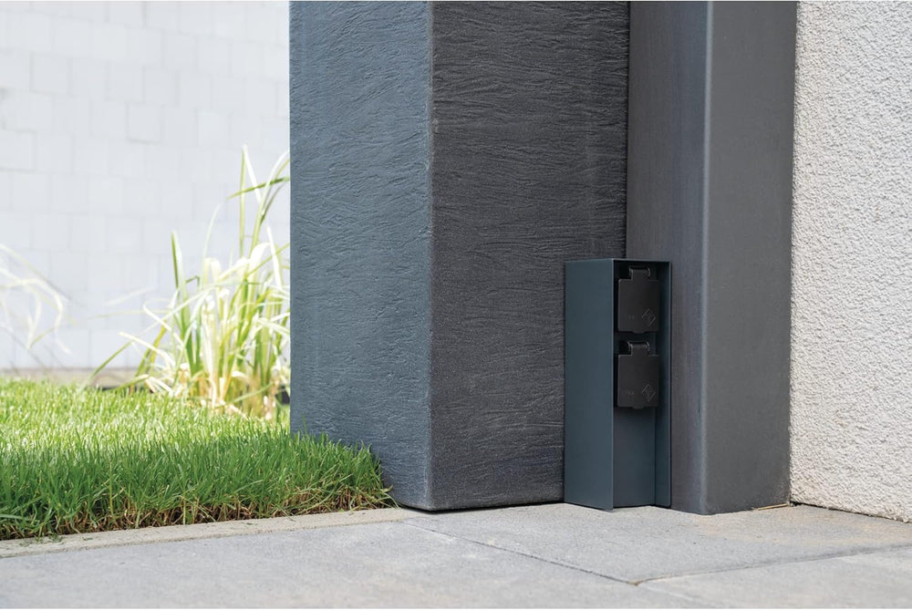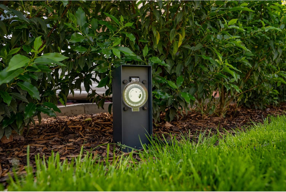 UNITEC Steckdosenverteiler für den Garten, Steckdosensäule mit Zeitschaltuhr, Aussensteckdose, Edels