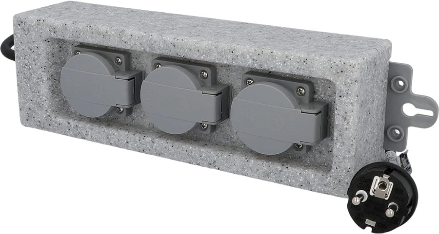 UNITEC Steckdosenverteiler für den Garten in Steinoptik, Gartensteckdose, Aussensteckdose, IP 44, 3