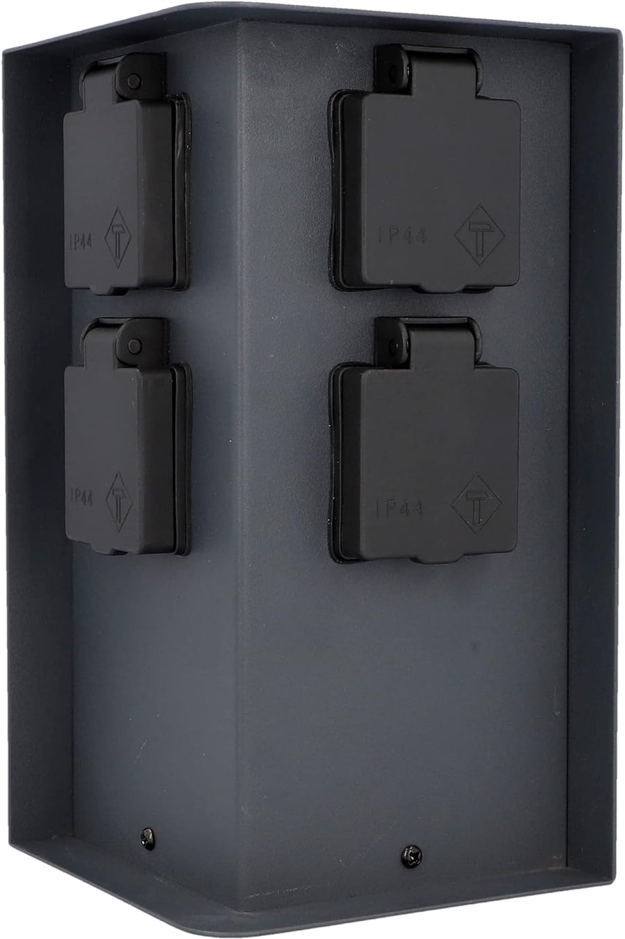 UNITEC Steckdosenverteiler für den Garten, Steckdosensäule, Aussensteckdose Edelstahl, IP 44, 4 Stec