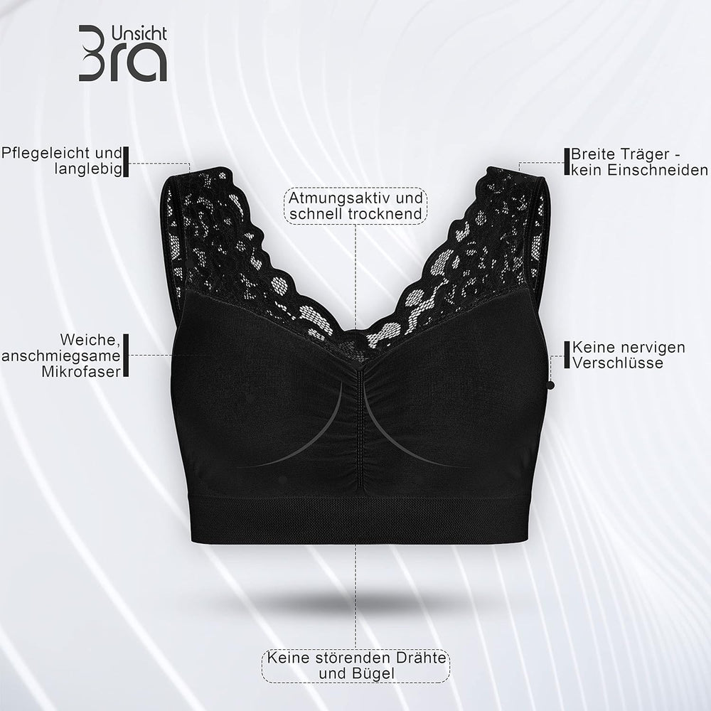 UnsichtBra Spitzen Bustier Damen BH ohne Buegel | 3er Set Wohlfühl Bustiers Tops mit feiner Spitze |