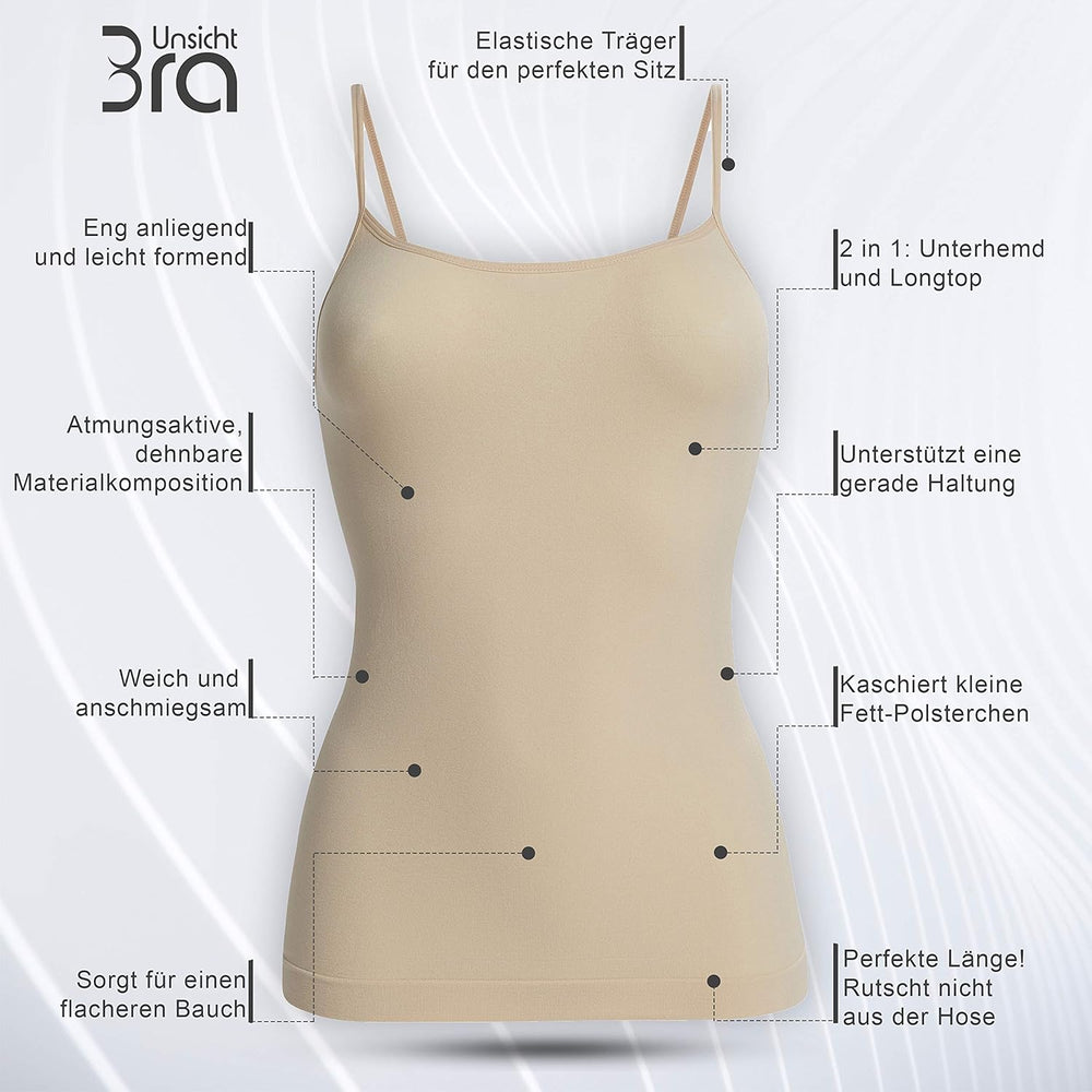 UnsichtBra 3er Pack Damen Shape Unterhemden | Spaghettiträger Basic Top Unterhemd | Mikrofaser Spagh