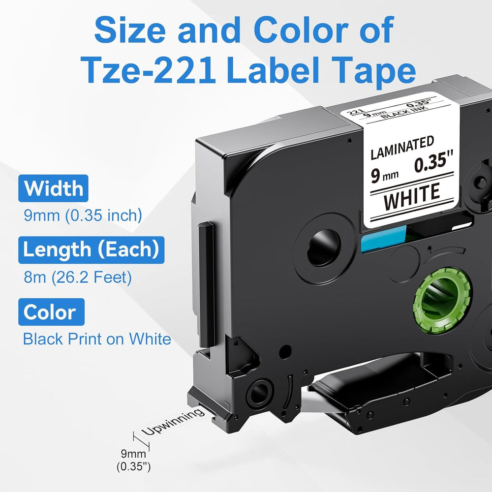 Upwinning kompatibel Brother P-touch bänder 9mm TZe-221 TZe221 AZe-221, Ersatz Brother P-touch Label