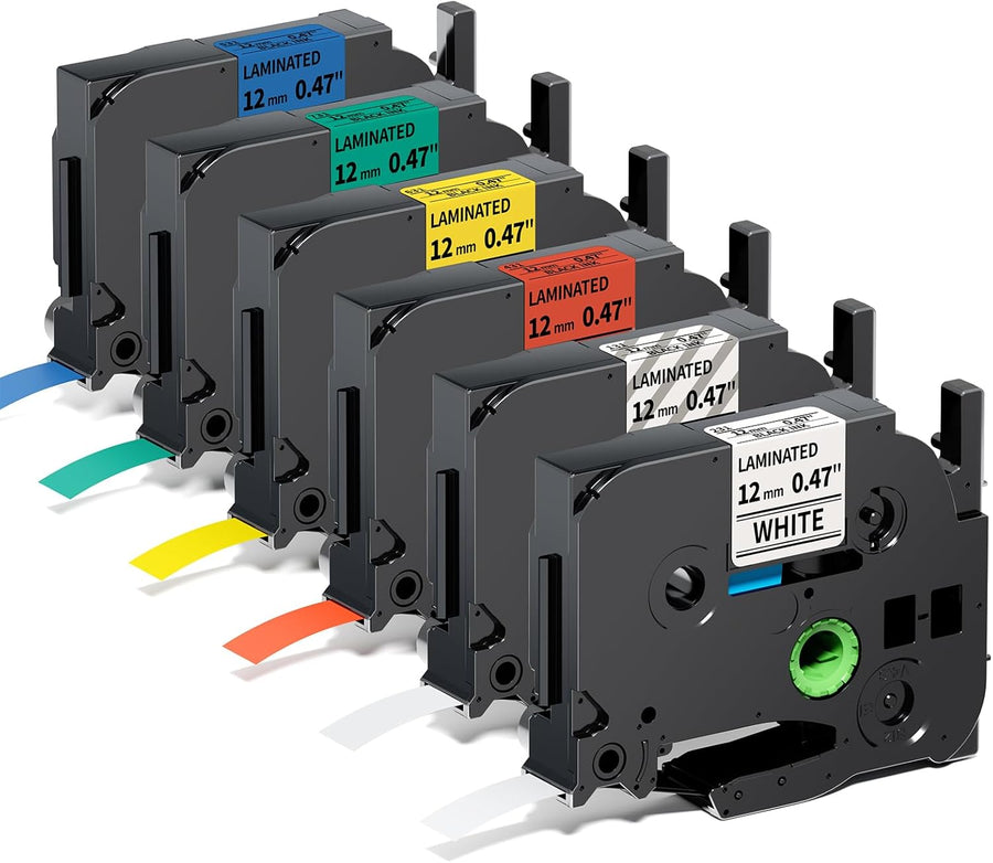 Aze 12mm Schriftbänder Kompatibel mit Brother p-touch Bänder 12mm, Schwarz auf Weiss/Transparent/Rot