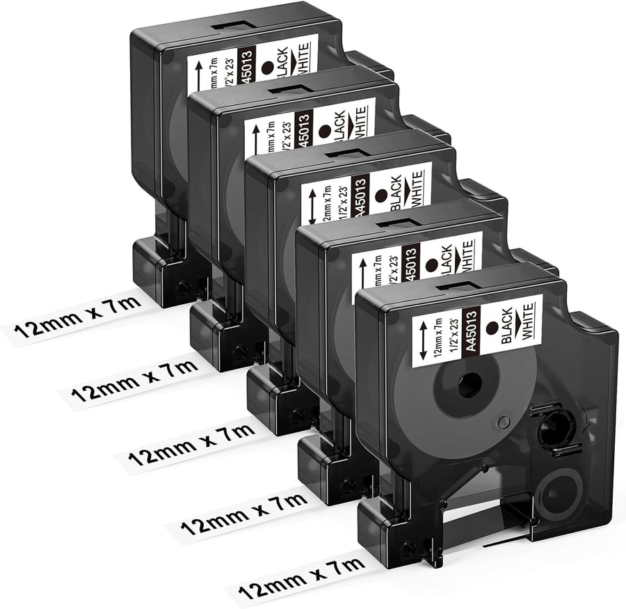 4 x Upwinning A45013 45013s 45013 Black White als Ersatz für Dymo D1 Etikettenband 12mm x 7m S072053