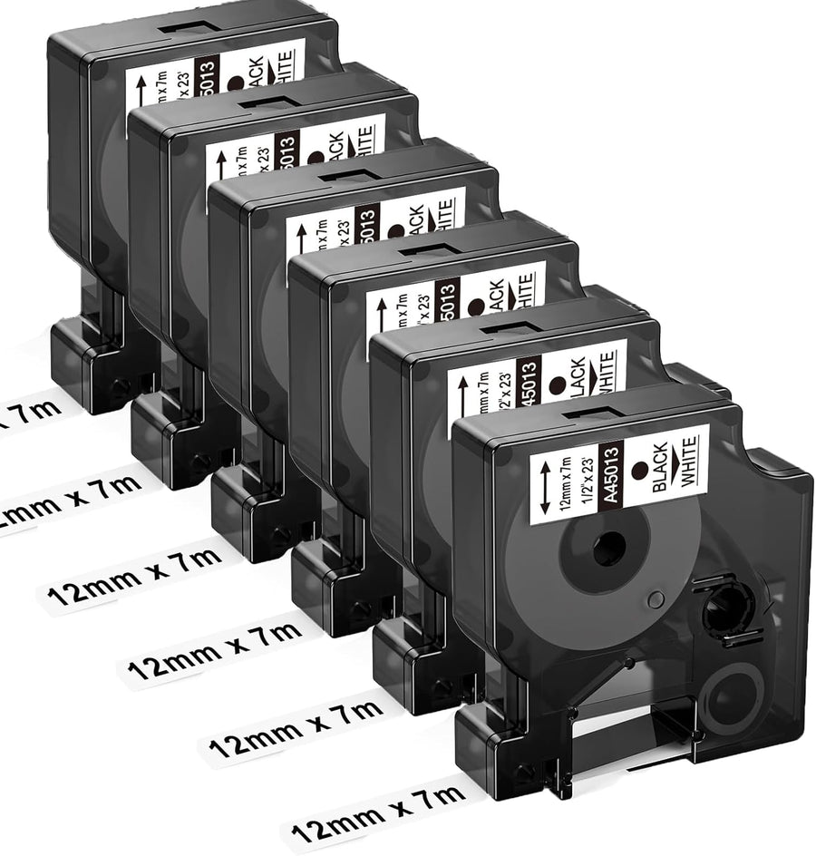 6x Upwinning 45013 A45013 White S0720530 s0720530s Kompatibel mit Dymo D1 Etikettenband 12mm x 7m We