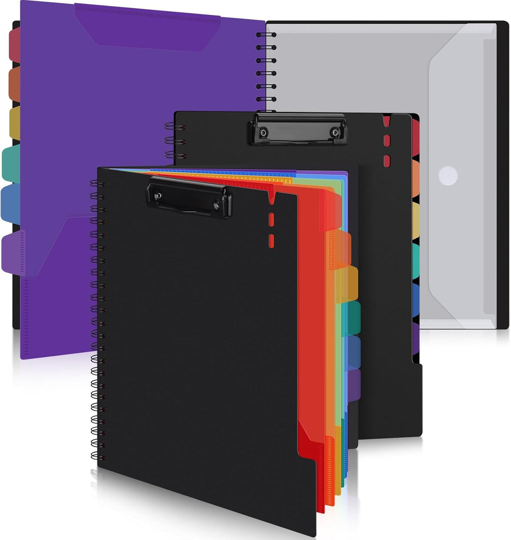 Uquelic 2 Stück Klemmbrett-Ordner aus Kunststoff, A4, Spiral-Folio-Ordner mit 6 doppelseitigen Halbt