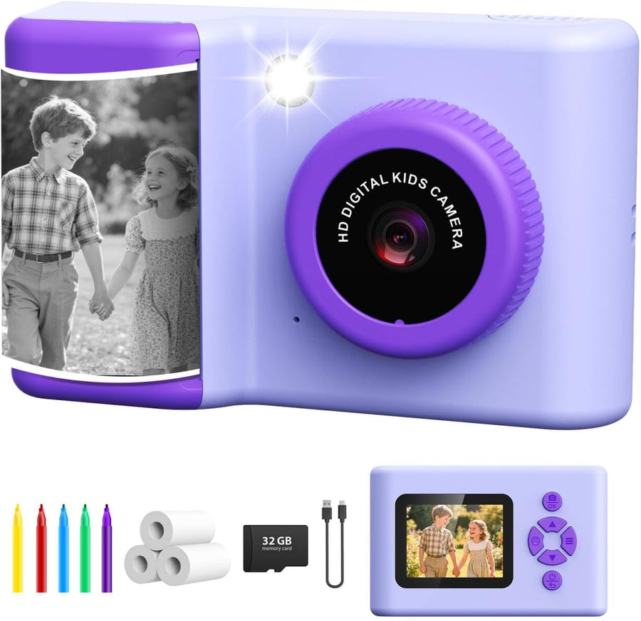 Sofortbildkamera Kinder, 2,4 Zoll Kinderkamera Sofortbildkamera mit LED-Blitz 32GB-Karte Druckpapier