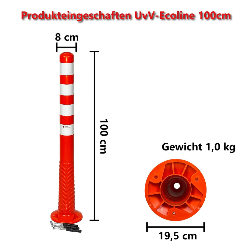 UvV Absperrpfosten Ecoline flexibel 100cm orange Reflexstreifen (RA1) Befestigungsmaterial - überfah