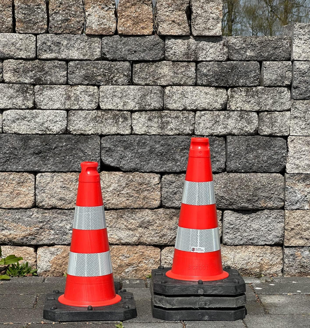 UvV® Leitkegel reflektierend 50 cm Pylone rot-orange 2,5 kg + Hochreflex RA2/C Folienringe Verkehrsk