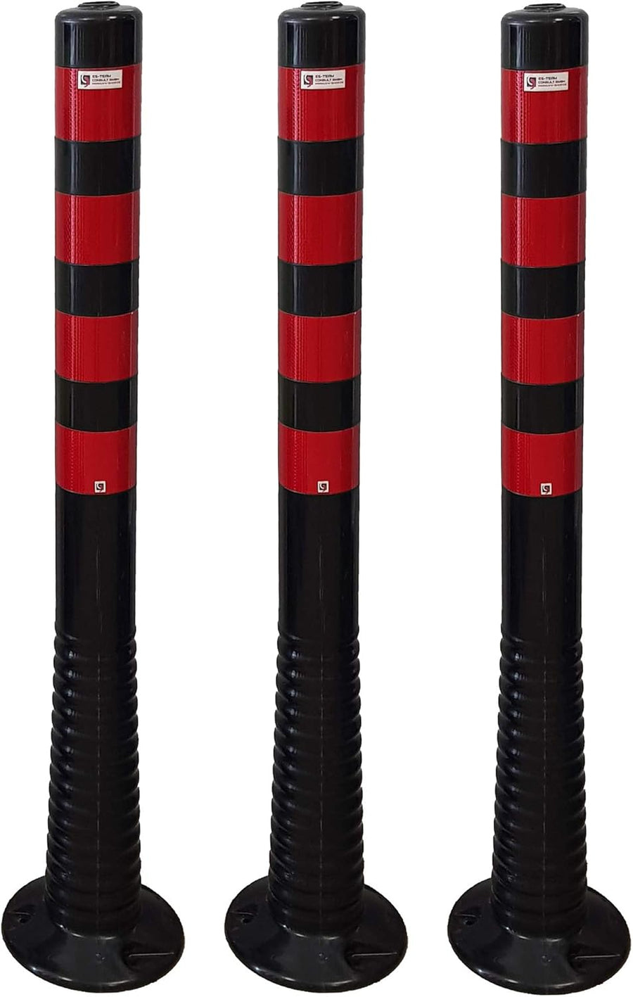 3 Stück UvV® Reflex Absperrpfosten, Poller 100 cm hoch, flexibel schwarz, reflektierend (3, Schwarz-
