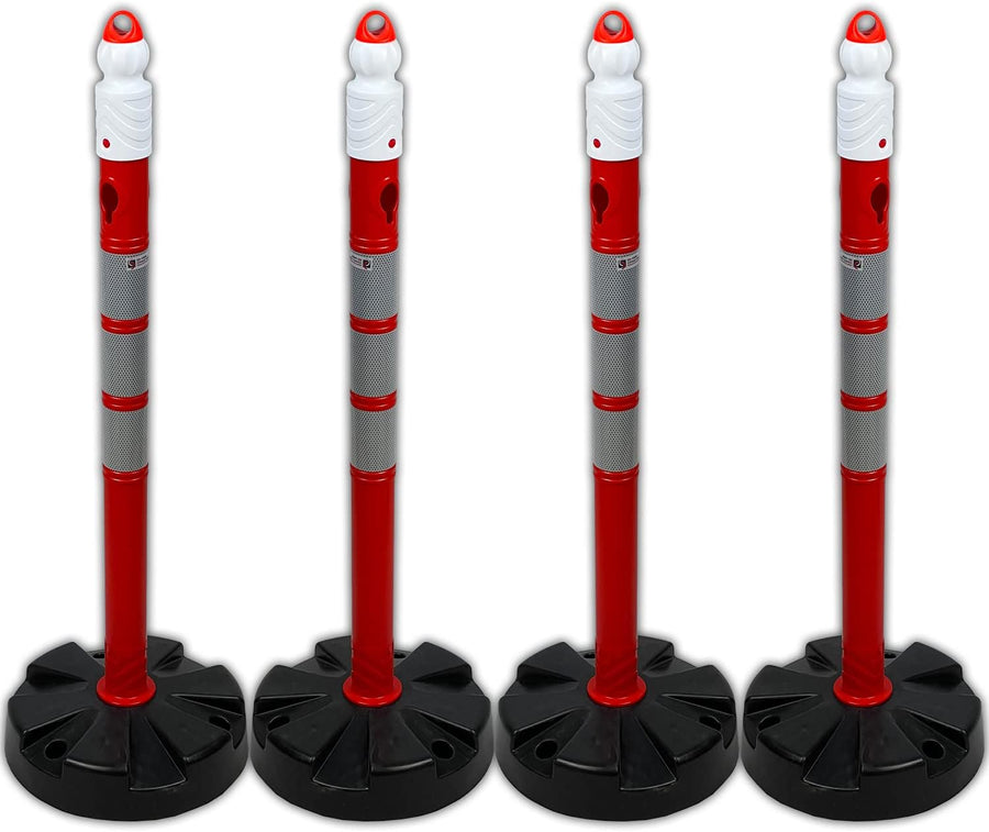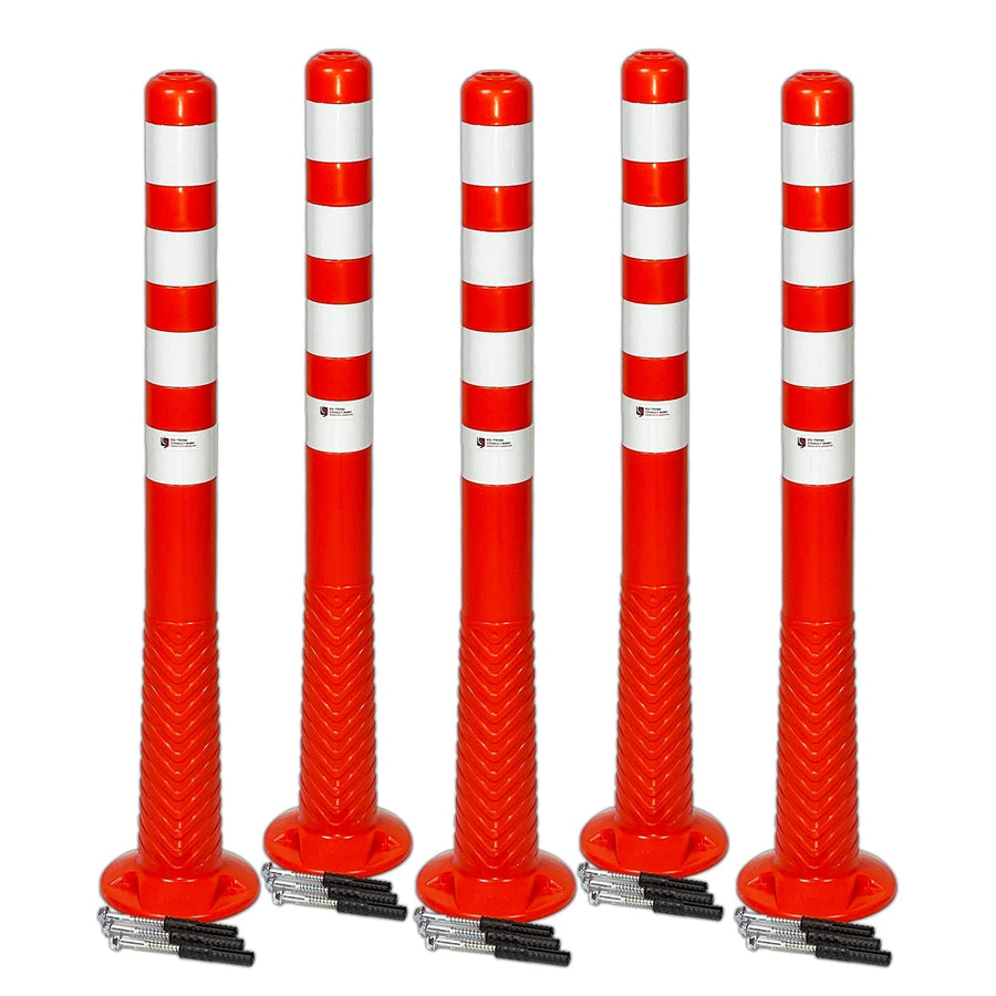 UvV 5 Stück flexible Absperrpfosten Ecoline 100cm orange vier Reflexstreifen (RA1) Befestigungsmater