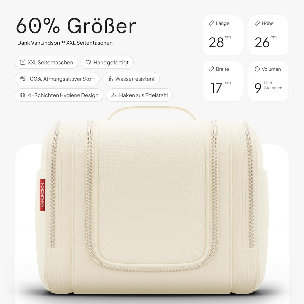 VanLindson Kulturbeutel XXL, 9 Liter Stauraum, 3-in-1 Kulturtasche zum Aufhängen für Damen, Herren u