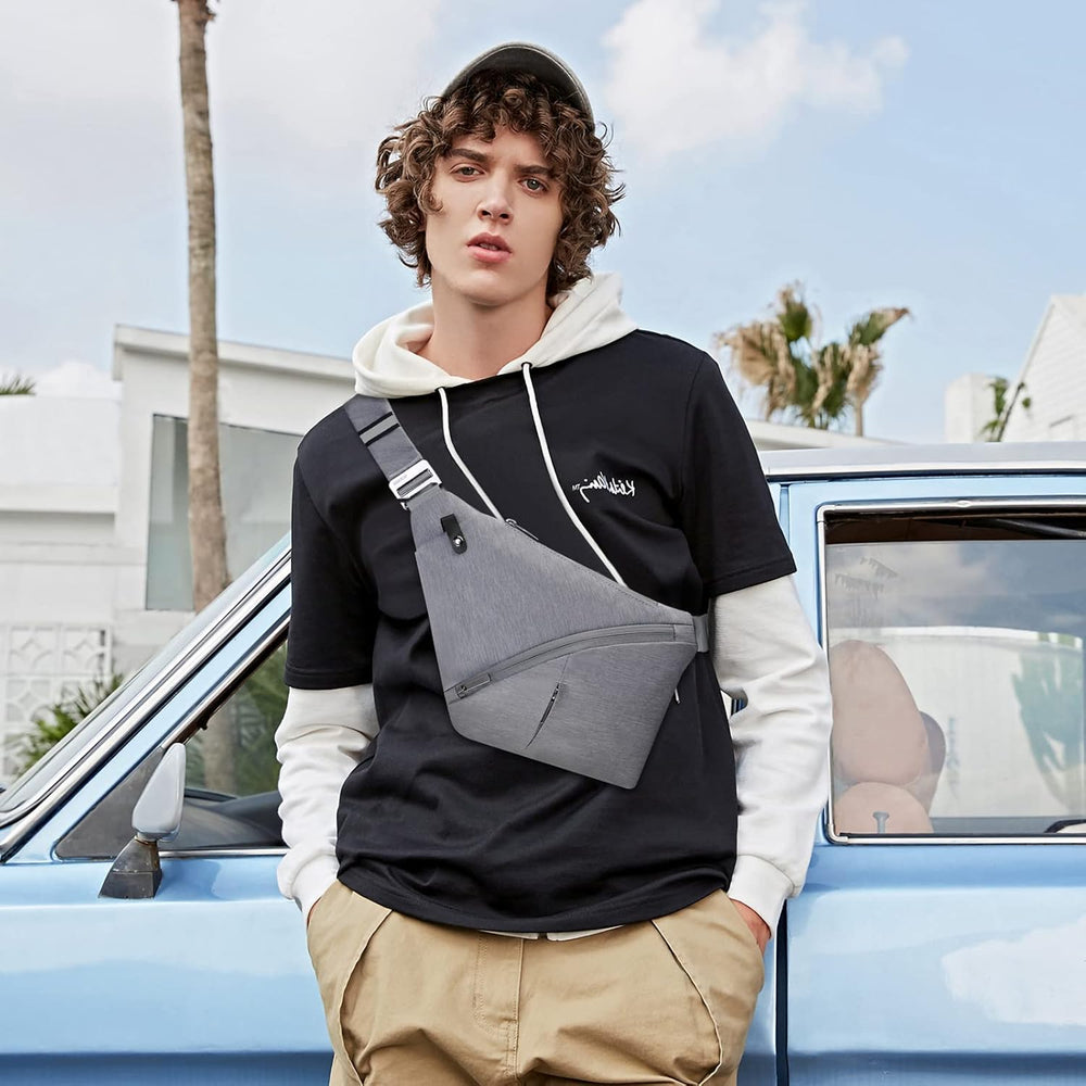 VARLIVOO Herren Sling Bag mit USB Port Brusttasche für Herren Schultertasche Fitness Radfahren Hikin