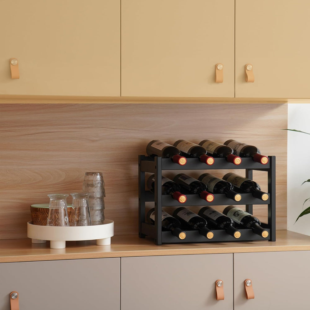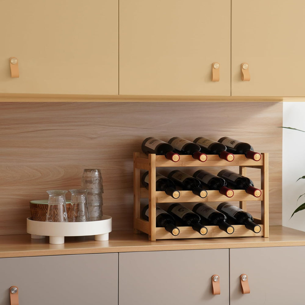 VASMIA Weinregal für 12 Flaschen, Flaschenregal mit 3 Etagen,Flaschenhalter aus Bambus für Keller,Kü