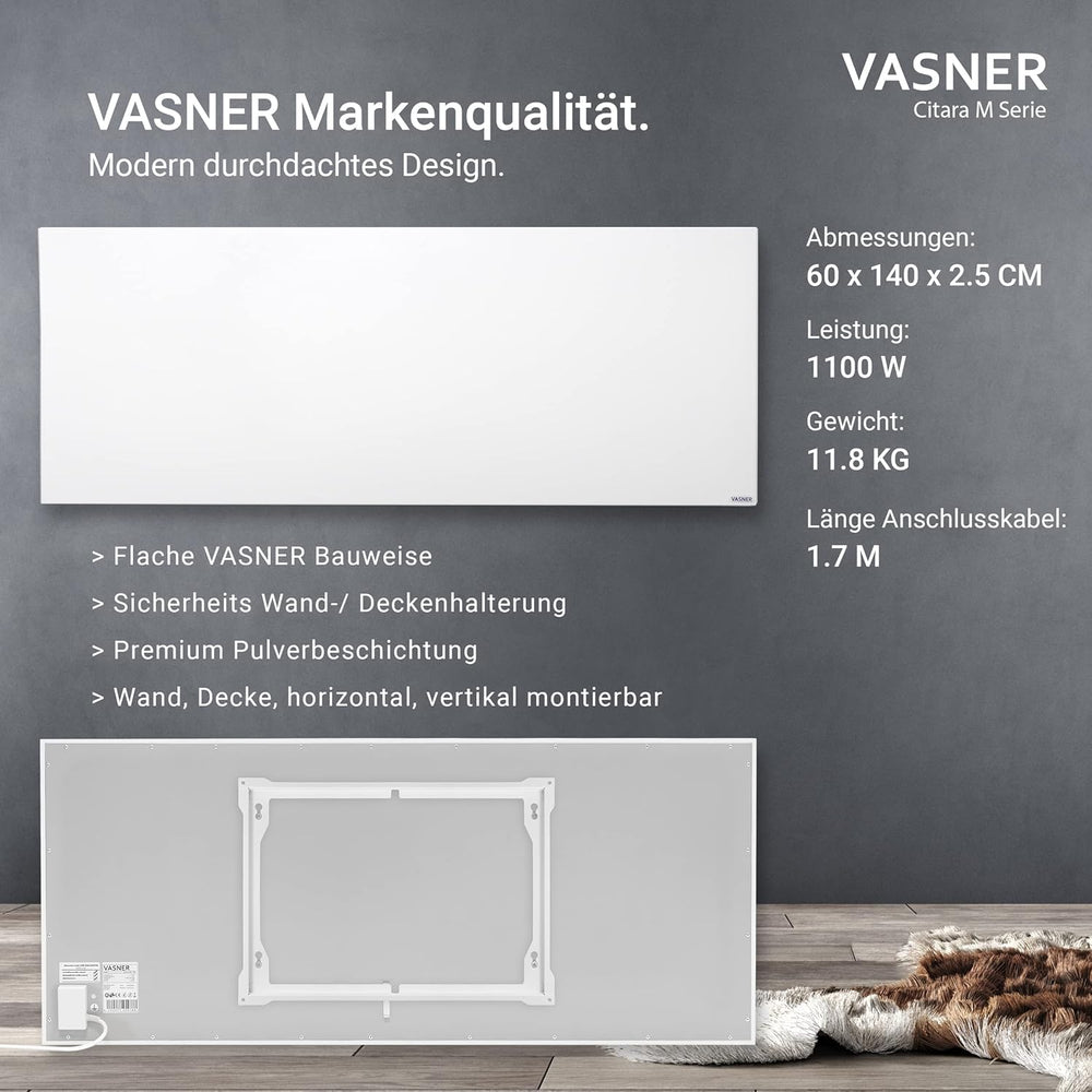 VASNER Citara M RX Funk Infrarotheizung – Infrarot Heizpaneel weiss 300-1100 Watt, Elektroheizung mi