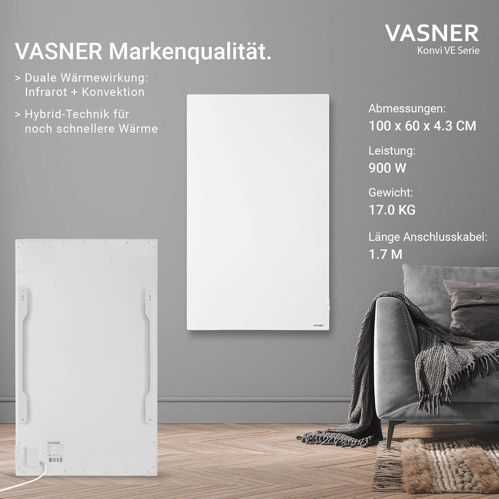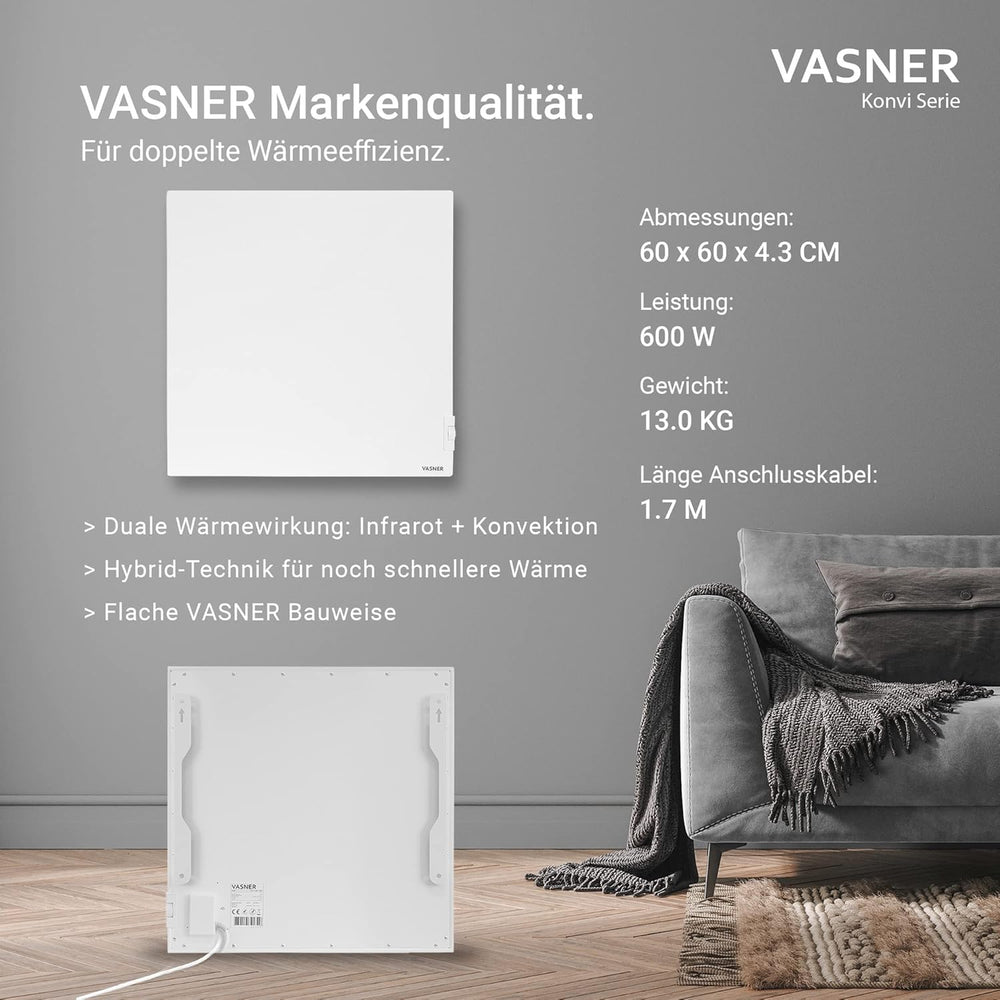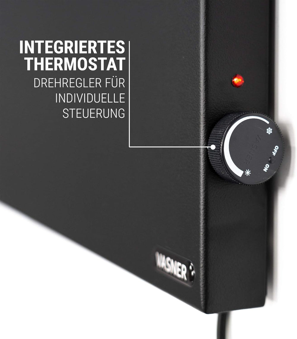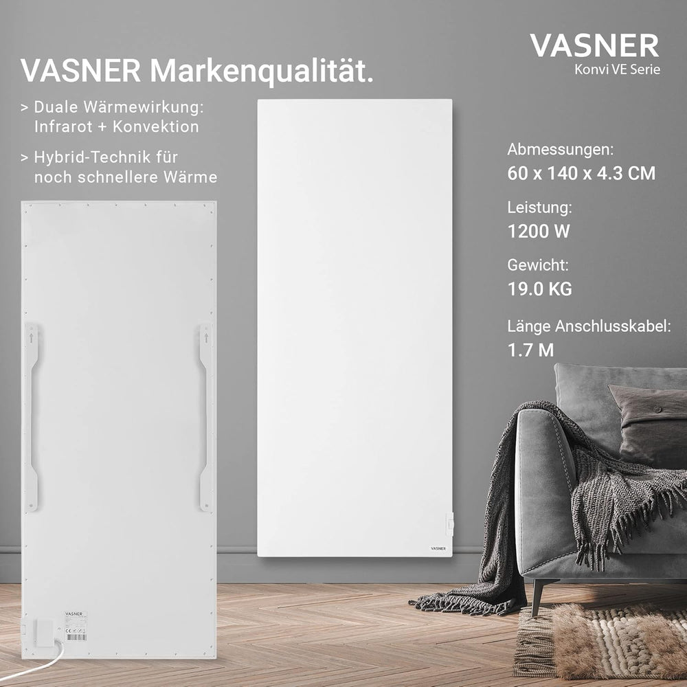VASNER Konvi Infrarotheizung mit Thermostat – Hybrid Elektroheizung inkl. Wandmontage 600-1200 Watt