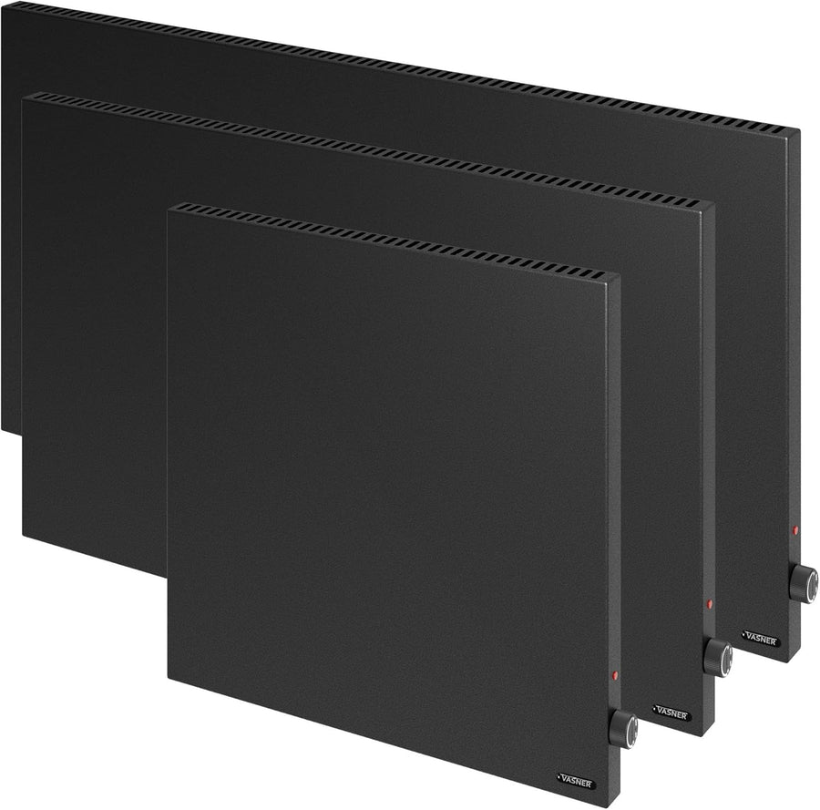 VASNER Konvi Schwarz - Hybrid Elektroheizung mit Thermostat, 600-1200 Watt, Infrarotheizung + Konvek