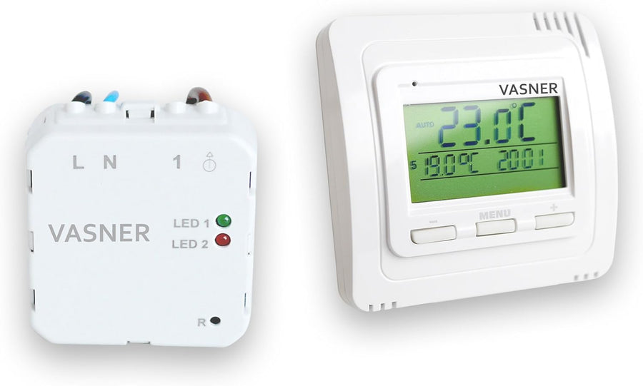 VASNER Funk Raumthermostat Set VFTB-US Unterputz für Infrarotheizung, digital, bis 9 Empfänger, prog