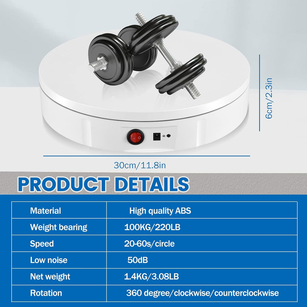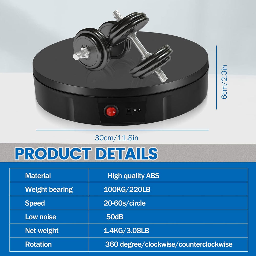 Drehteller Elektrisch, VAYOTOY Wiederaufladbarer Drehscheibe Elektrisch 100 kg Last 30 cm Durchmesse